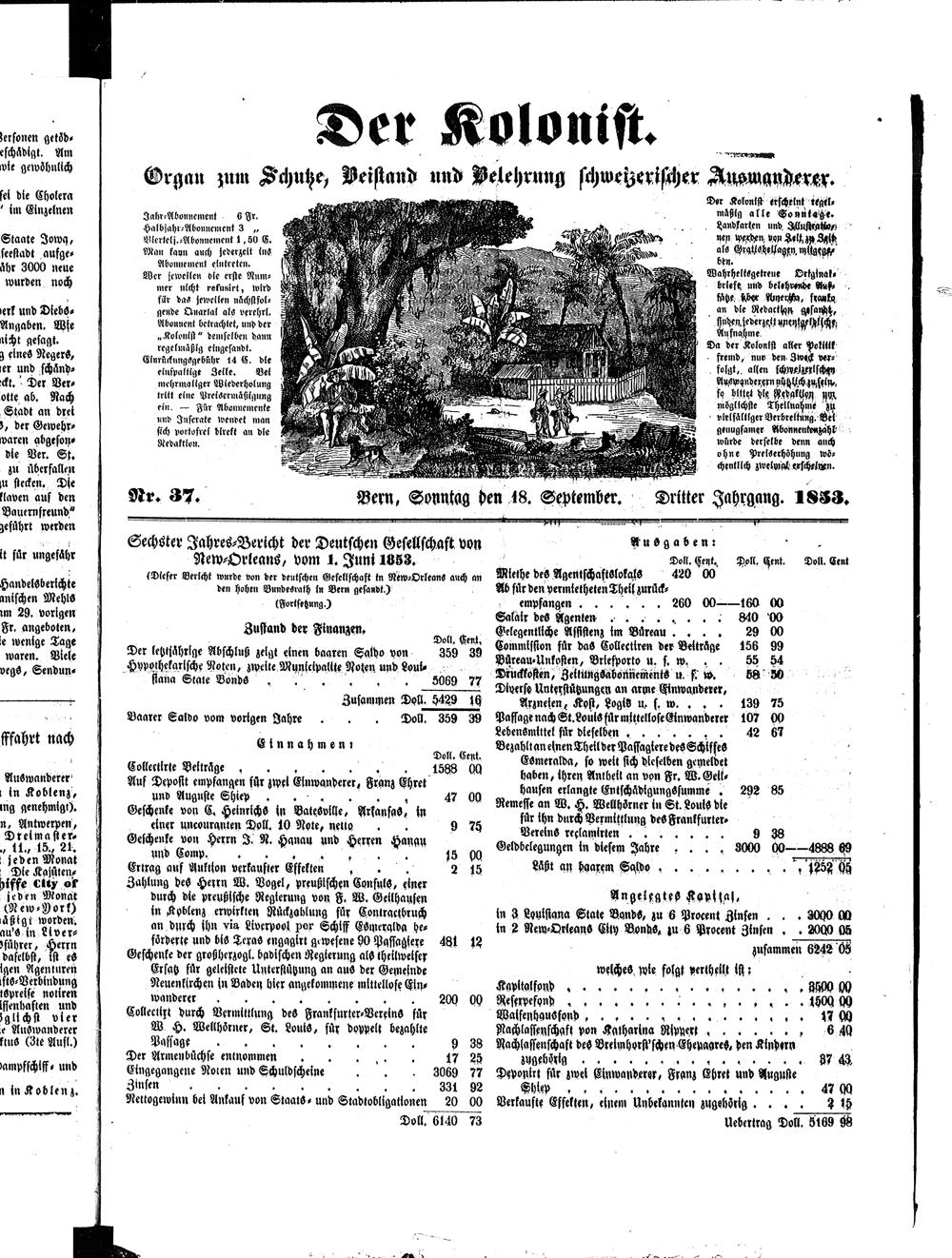 Der Kolonist : Organ zum Schutze, Beistand und Belehrung schweizerischer Auswanderer