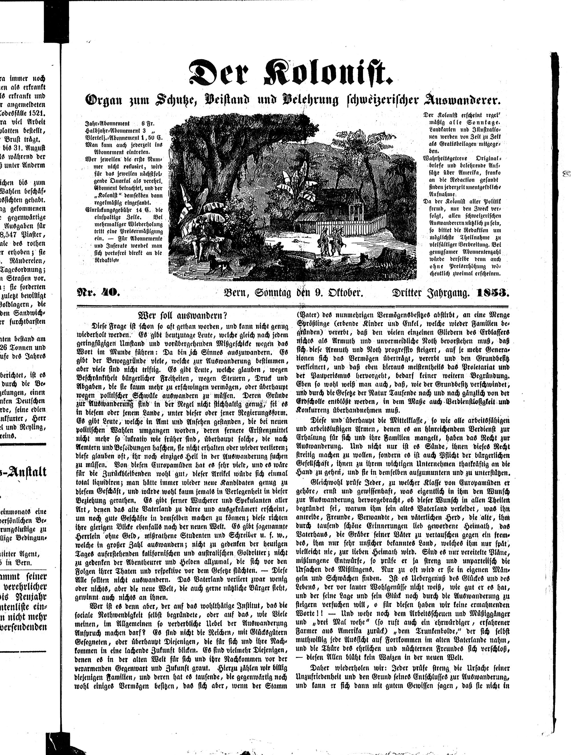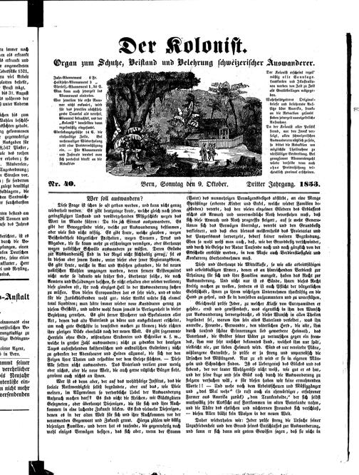 Der Kolonist : Organ zum Schutze, Beistand und Belehrung schweizerischer Auswanderer