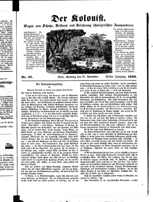 Der Kolonist : Organ zum Schutze, Beistand und Belehrung schweizerischer Auswanderer