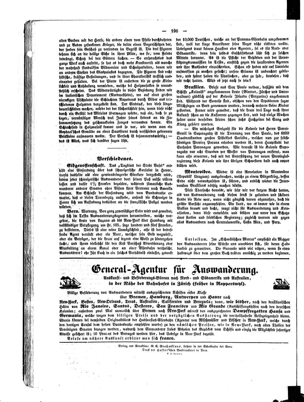 Der Kolonist : Organ zum Schutze, Beistand und Belehrung schweizerischer Auswanderer
