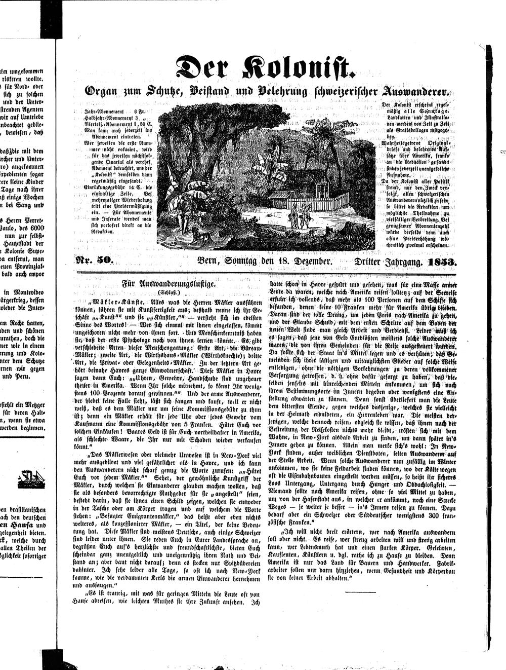 Der Kolonist. 1851-1857