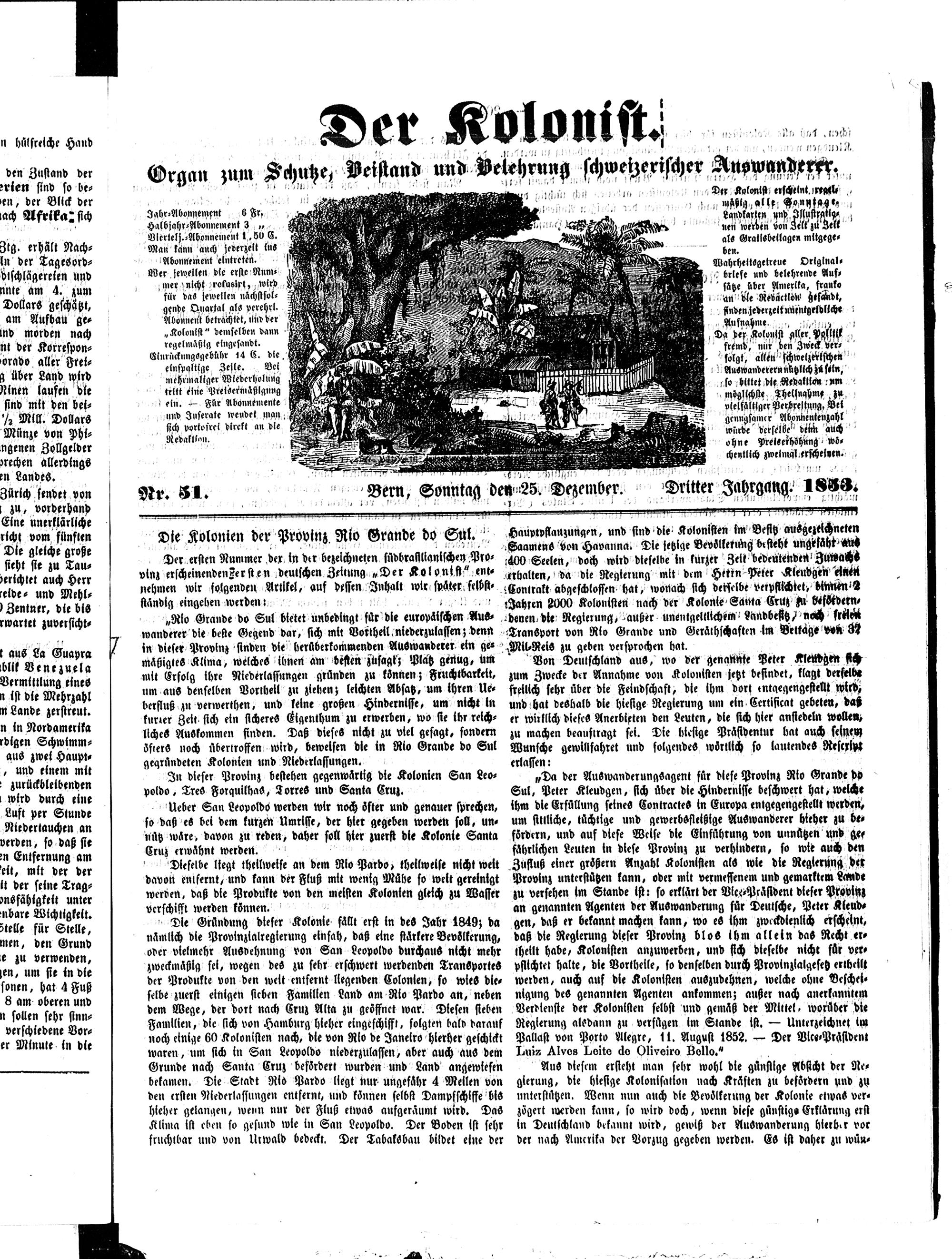 Der Kolonist. 1851-1857