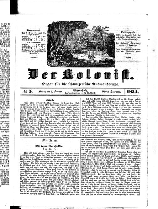 Der Kolonist : Organ zum Schutze, Beistand und Belehrung schweizerischer Auswanderer