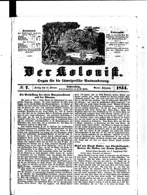 Der Kolonist : Organ zum Schutze, Beistand und Belehrung schweizerischer Auswanderer