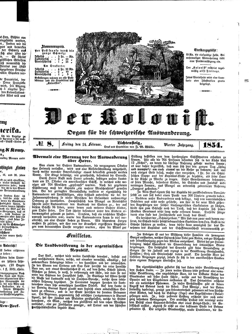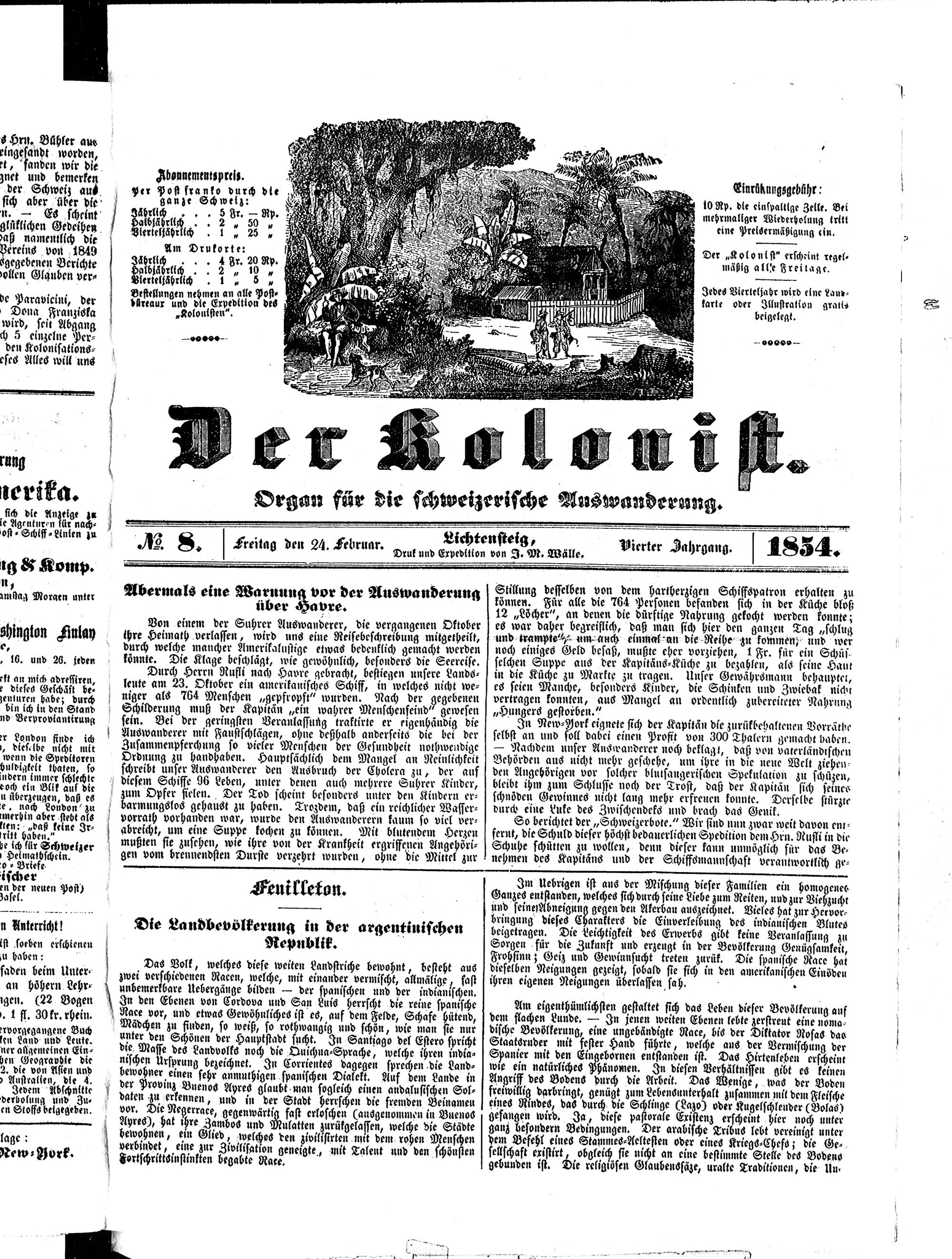 Der Kolonist : Organ zum Schutze, Beistand und Belehrung schweizerischer Auswanderer