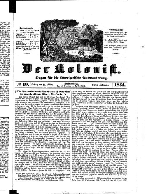 Der Kolonist : Organ zum Schutze, Beistand und Belehrung schweizerischer Auswanderer