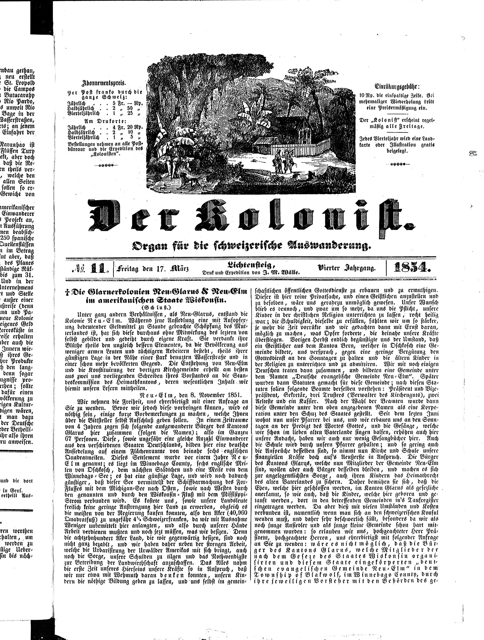 Der Kolonist : Organ zum Schutze, Beistand und Belehrung schweizerischer Auswanderer