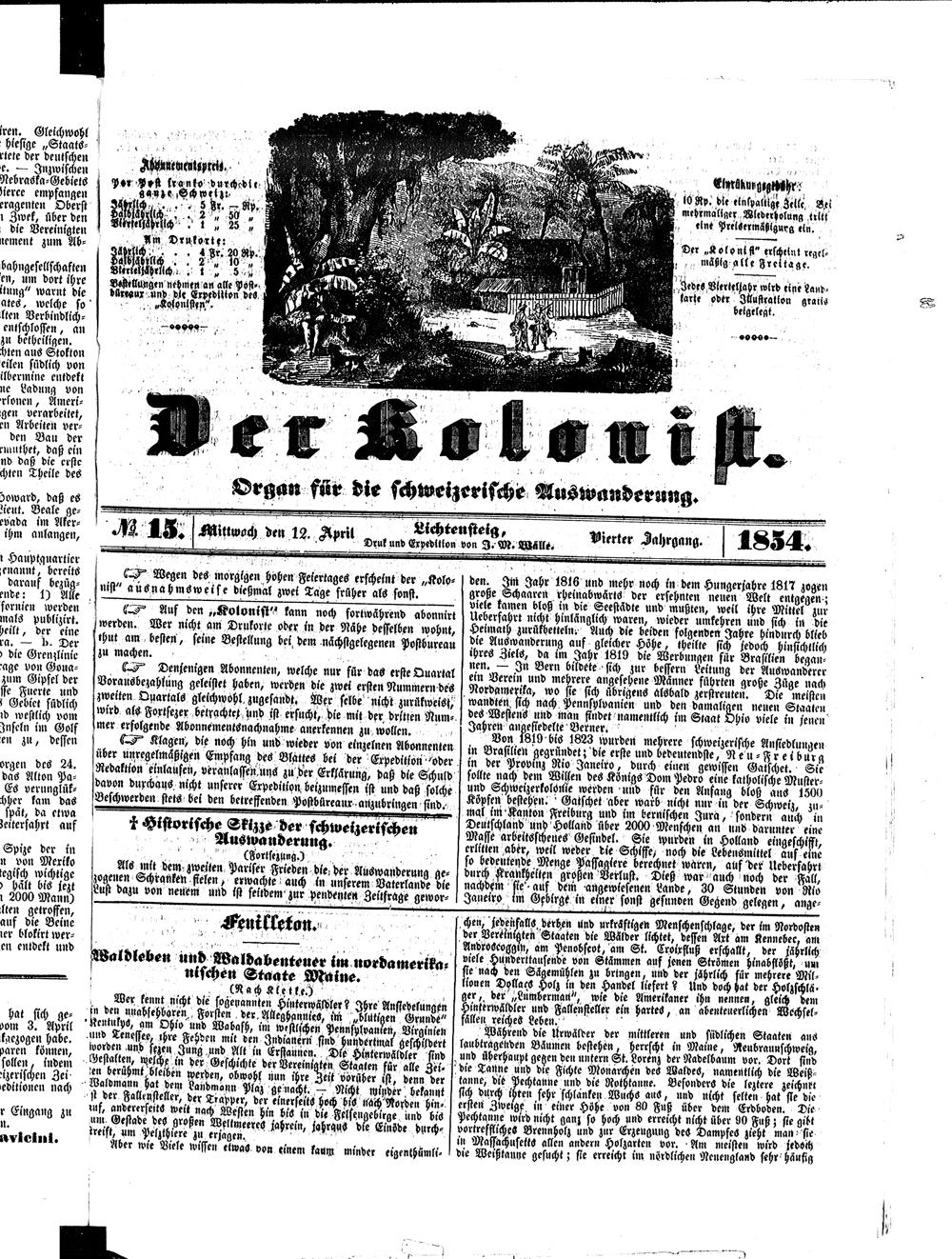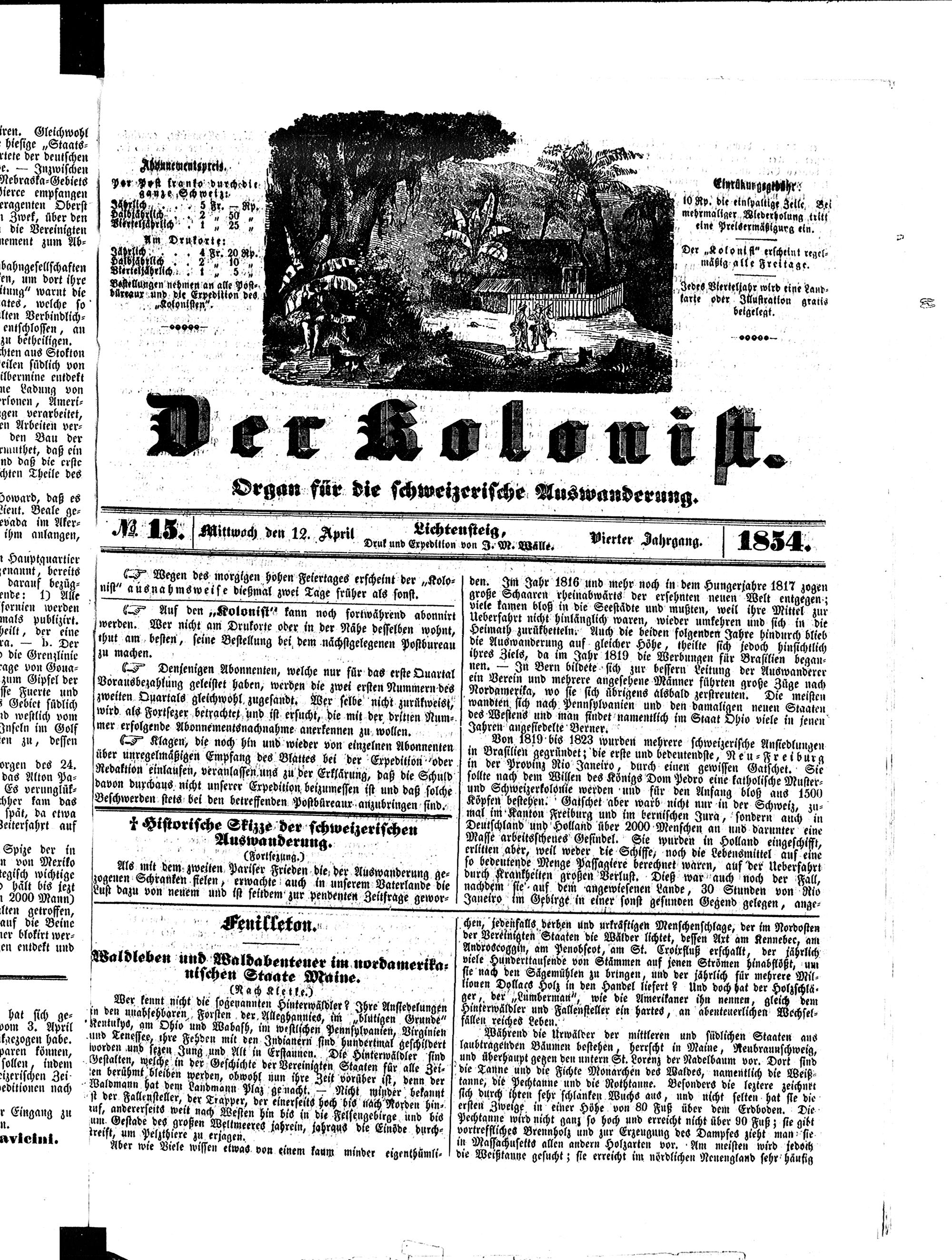 Der Kolonist : Organ zum Schutze, Beistand und Belehrung schweizerischer Auswanderer
