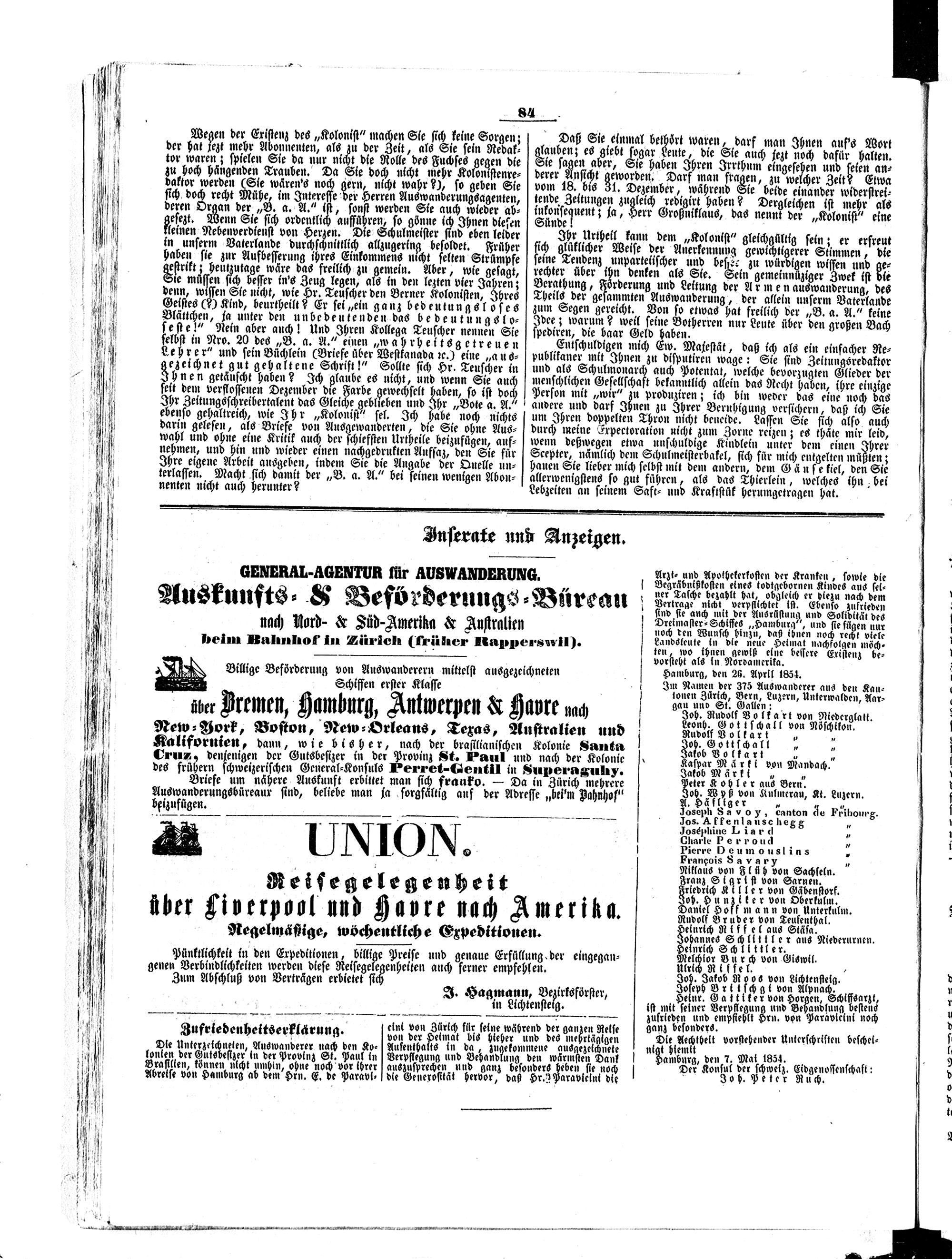 Der Kolonist. 1851-1857