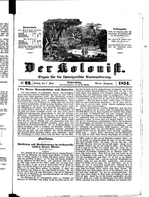 Der Kolonist : Organ zum Schutze, Beistand und Belehrung schweizerischer Auswanderer