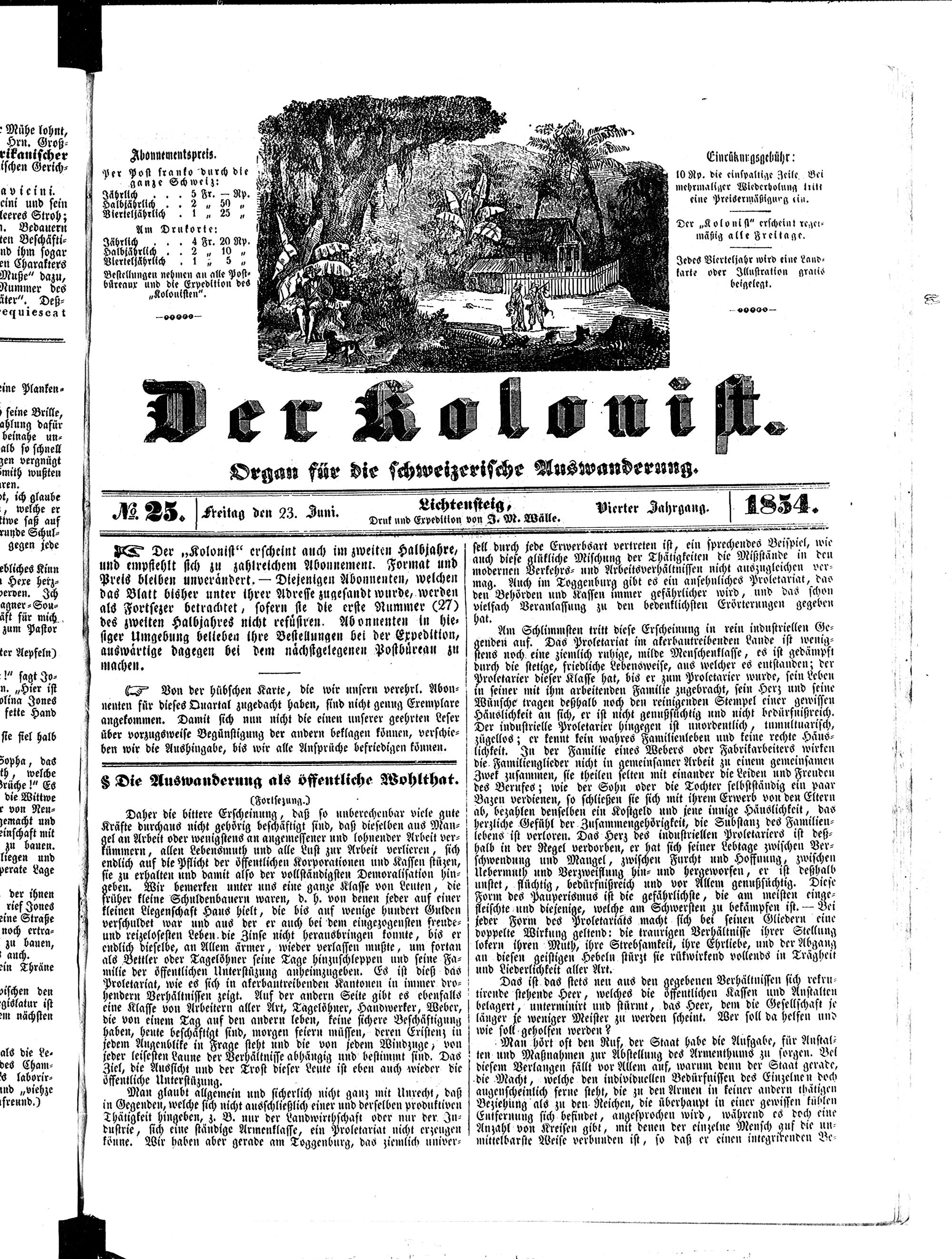 Der Kolonist : Organ zum Schutze, Beistand und Belehrung schweizerischer Auswanderer