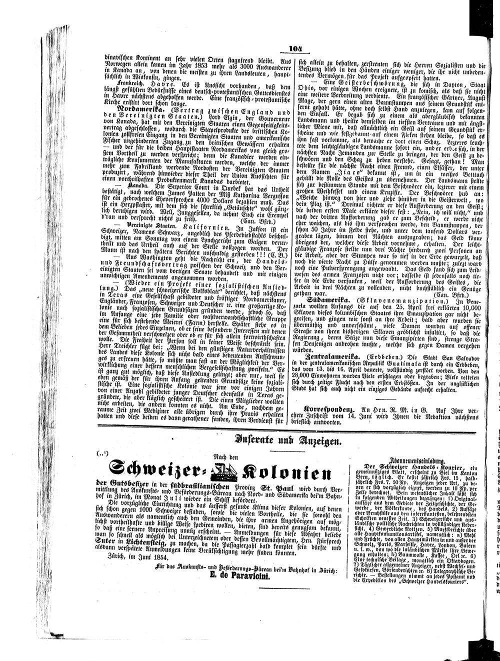 Der Kolonist : Organ zum Schutze, Beistand und Belehrung schweizerischer Auswanderer