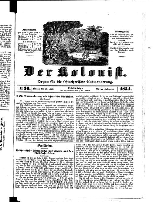 Der Kolonist : Organ zum Schutze, Beistand und Belehrung schweizerischer Auswanderer