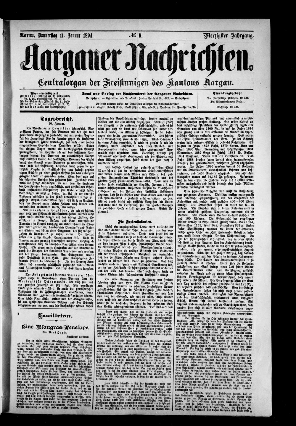 Aargauer Nachrichten : Freisinning-demokratisches Organ des Kantons Aargau