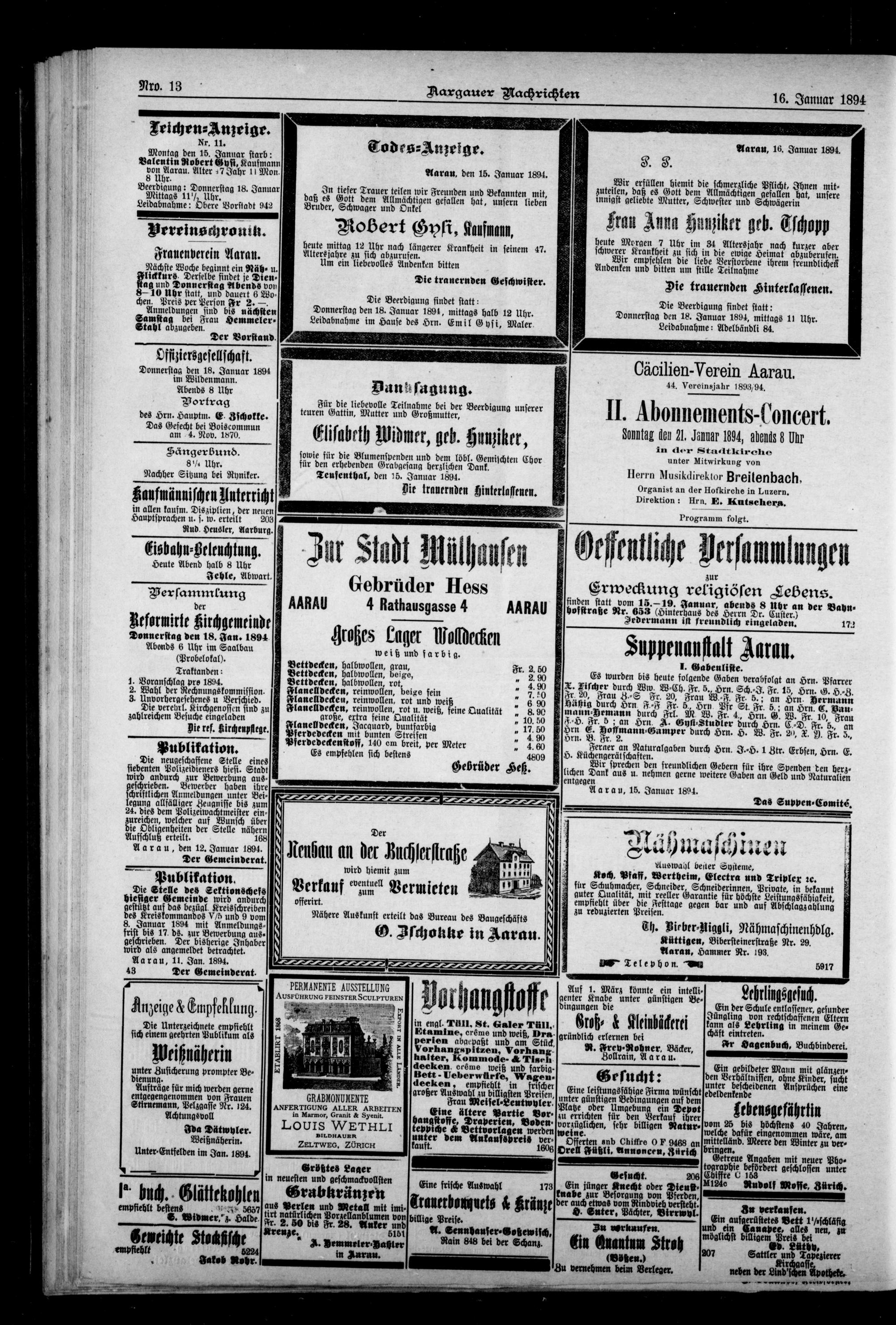 Aargauer Nachrichten : Freisinning-demokratisches Organ des Kantons Aargau