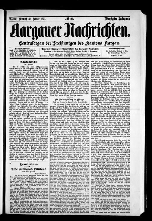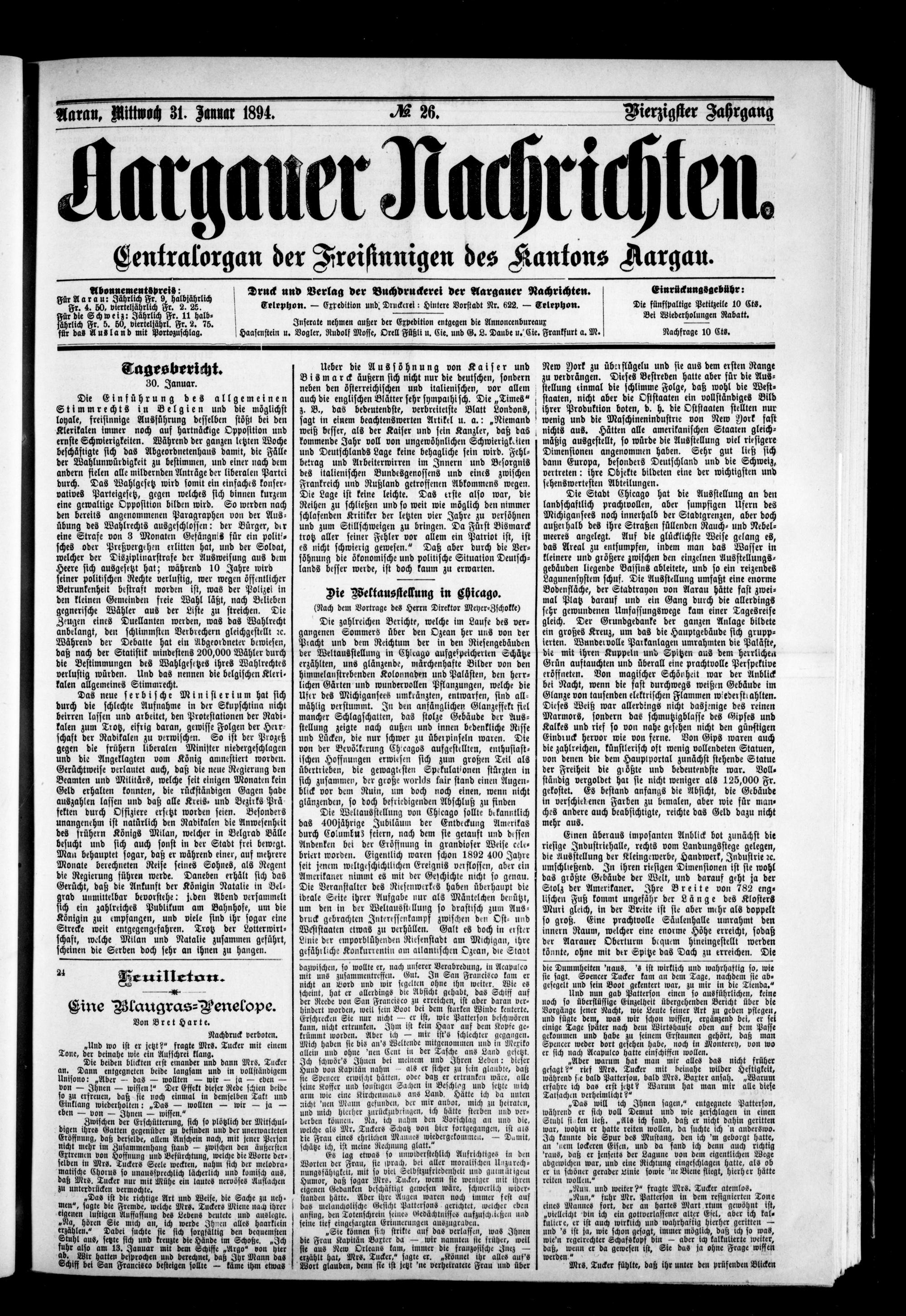 Aargauer Nachrichten : Freisinning-demokratisches Organ des Kantons Aargau