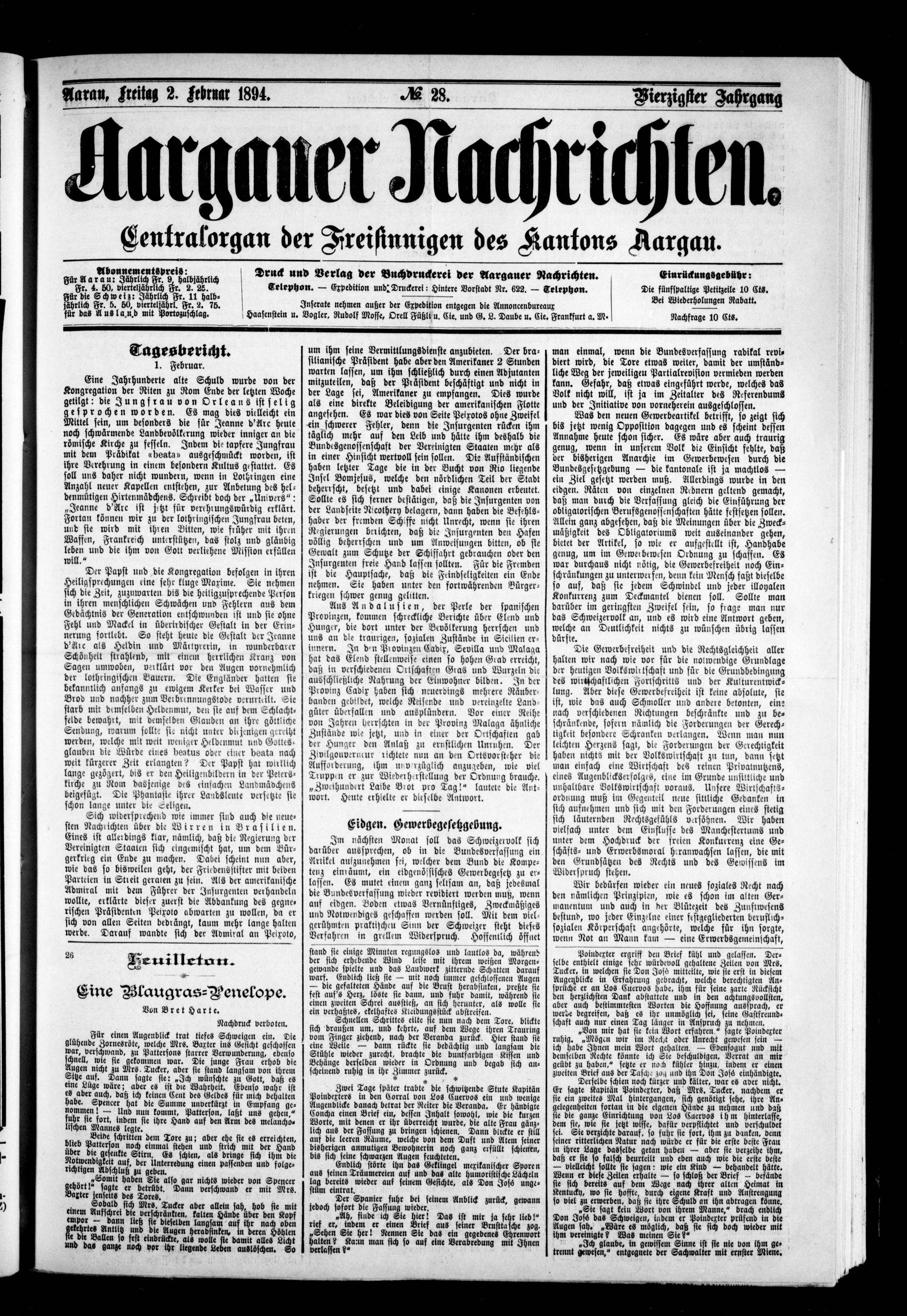 Aargauer Nachrichten : Freisinning-demokratisches Organ des Kantons Aargau