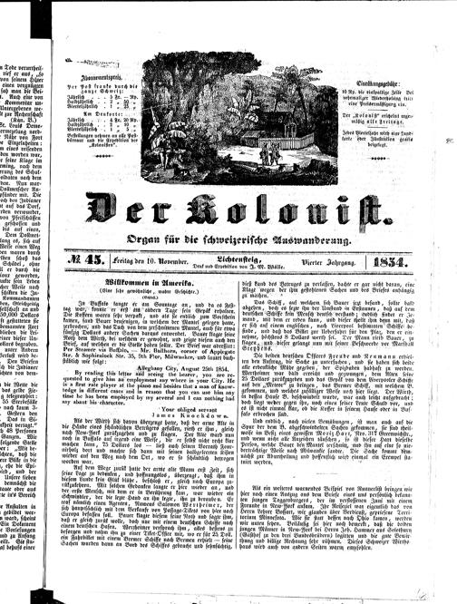 Der Kolonist : Organ zum Schutze, Beistand und Belehrung schweizerischer Auswanderer