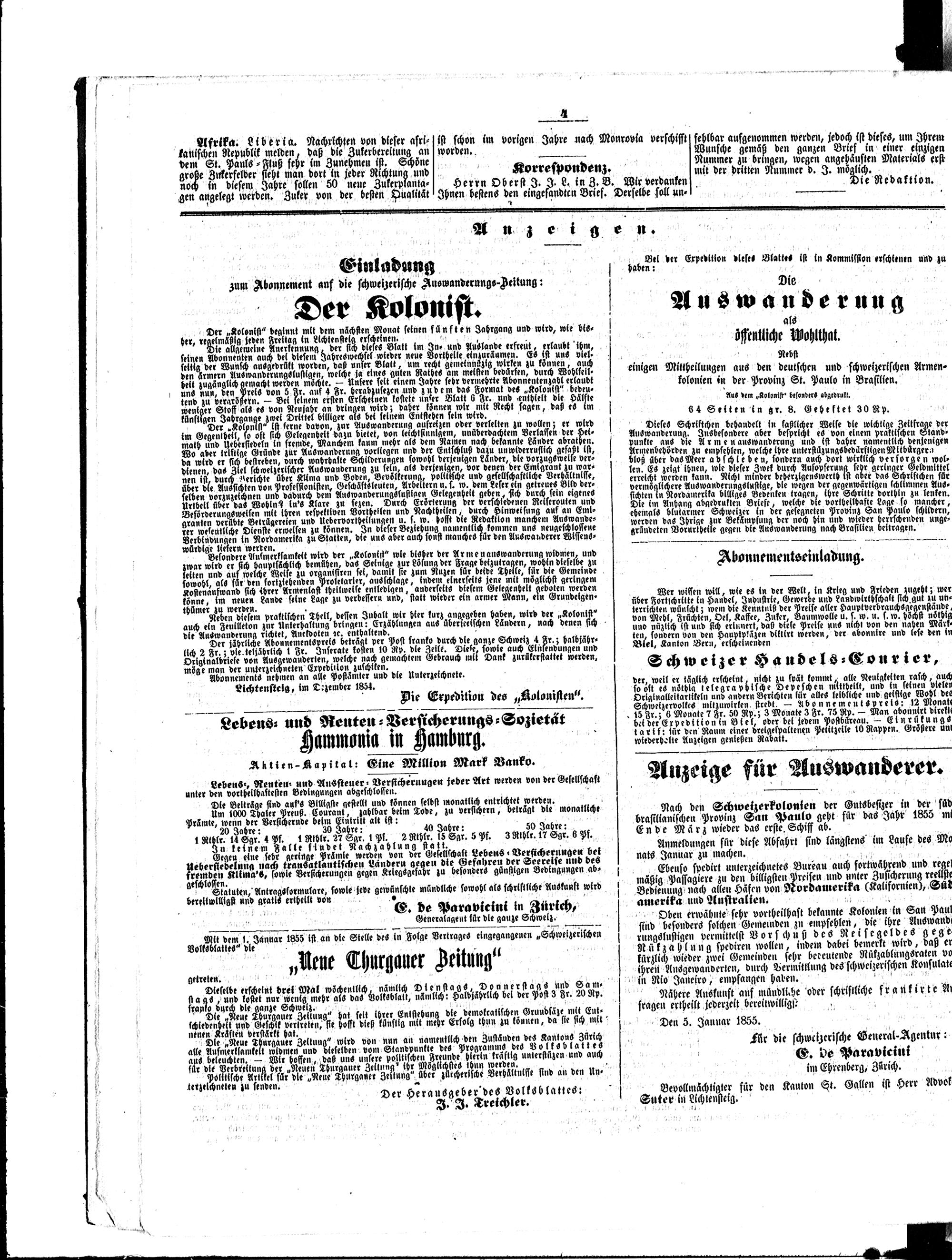 Der Kolonist. 1851-1857