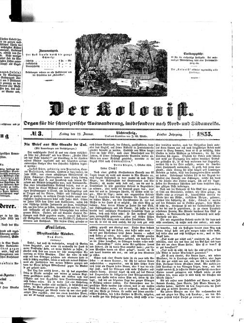 Der Kolonist : Organ zum Schutze, Beistand und Belehrung schweizerischer Auswanderer
