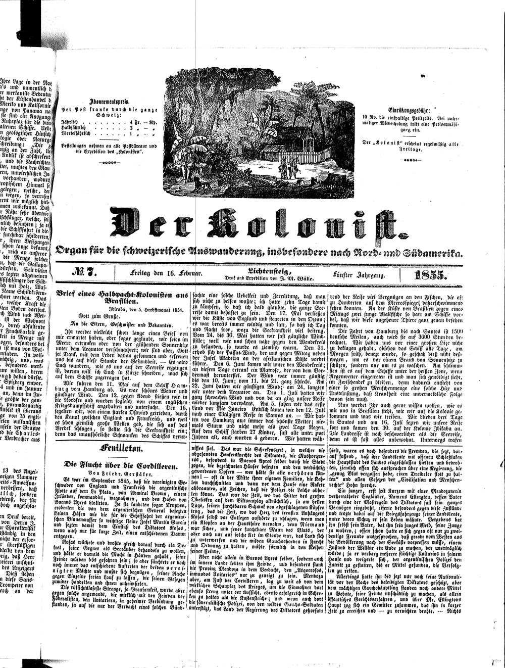 Der Kolonist. 1851-1857