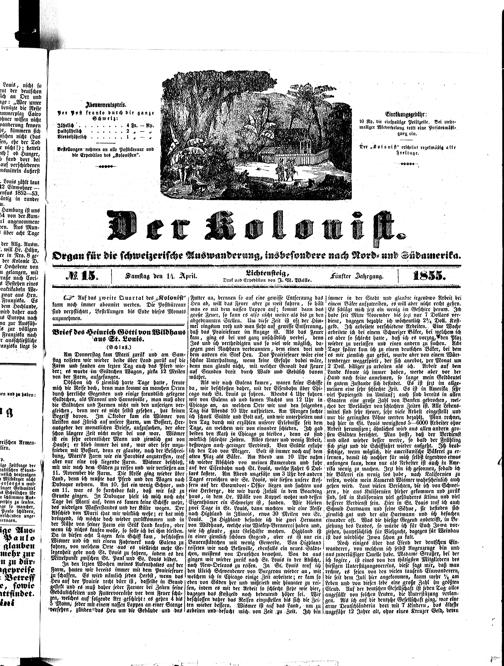 Der Kolonist : Organ zum Schutze, Beistand und Belehrung schweizerischer Auswanderer