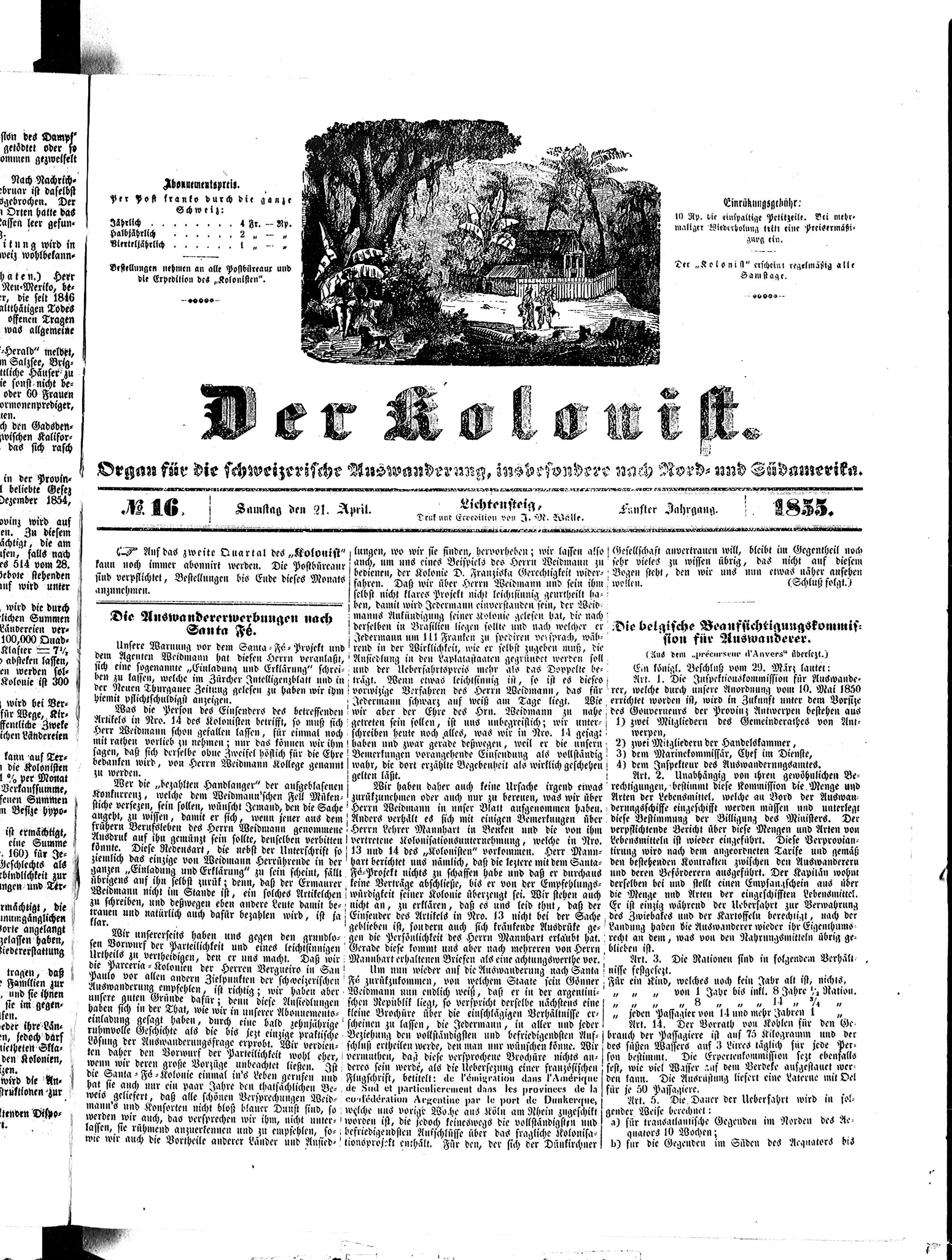 Der Kolonist : Organ zum Schutze, Beistand und Belehrung schweizerischer Auswanderer