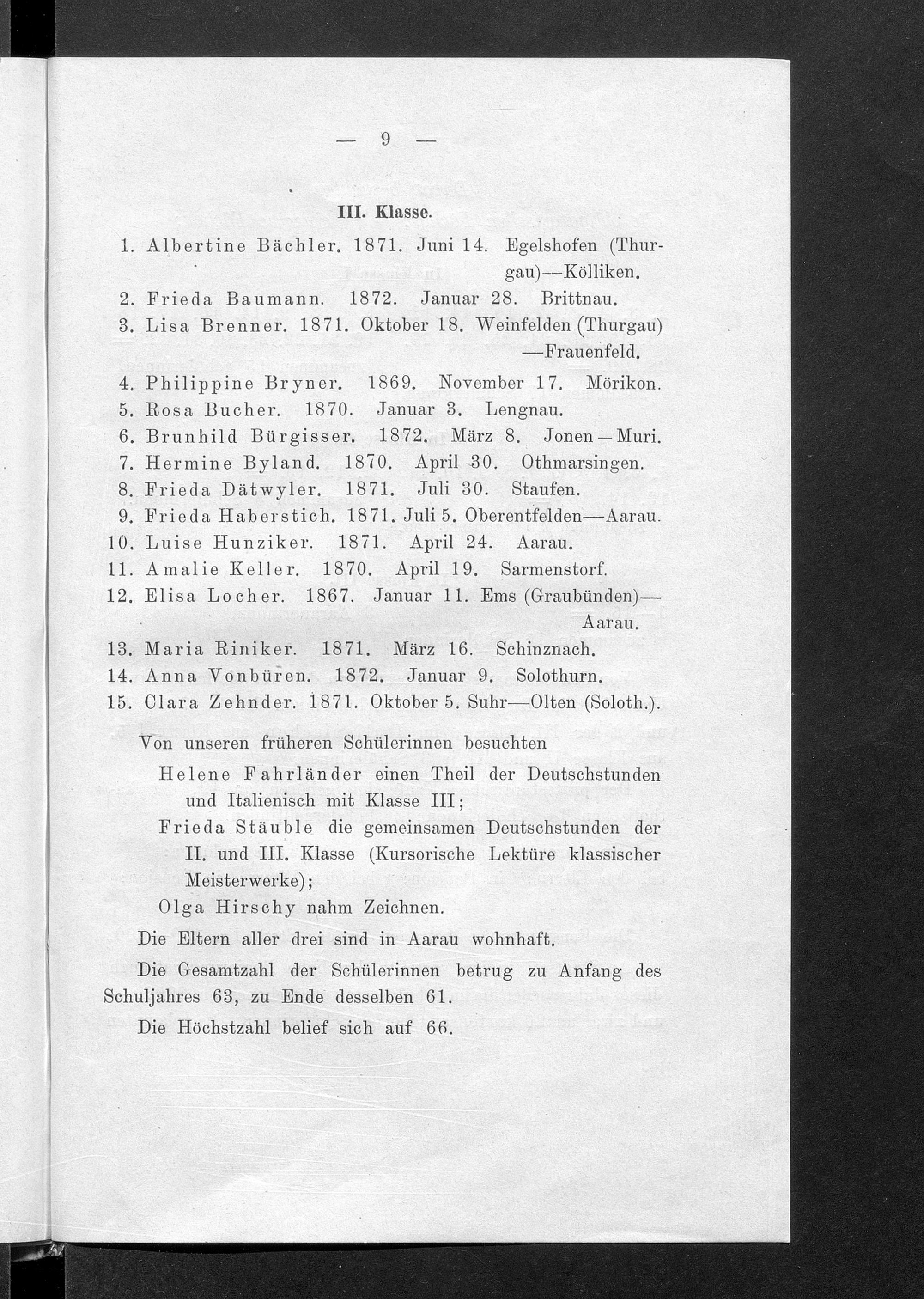 Jahresbericht über das Töchterinstitut und Lehrerinnenseminar in Aarau