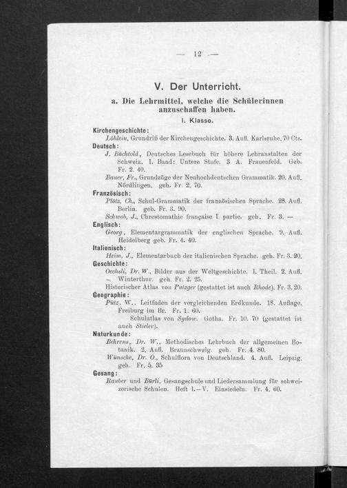 Jahresbericht über das Töchterinstitut und Lehrerinnenseminar in Aarau