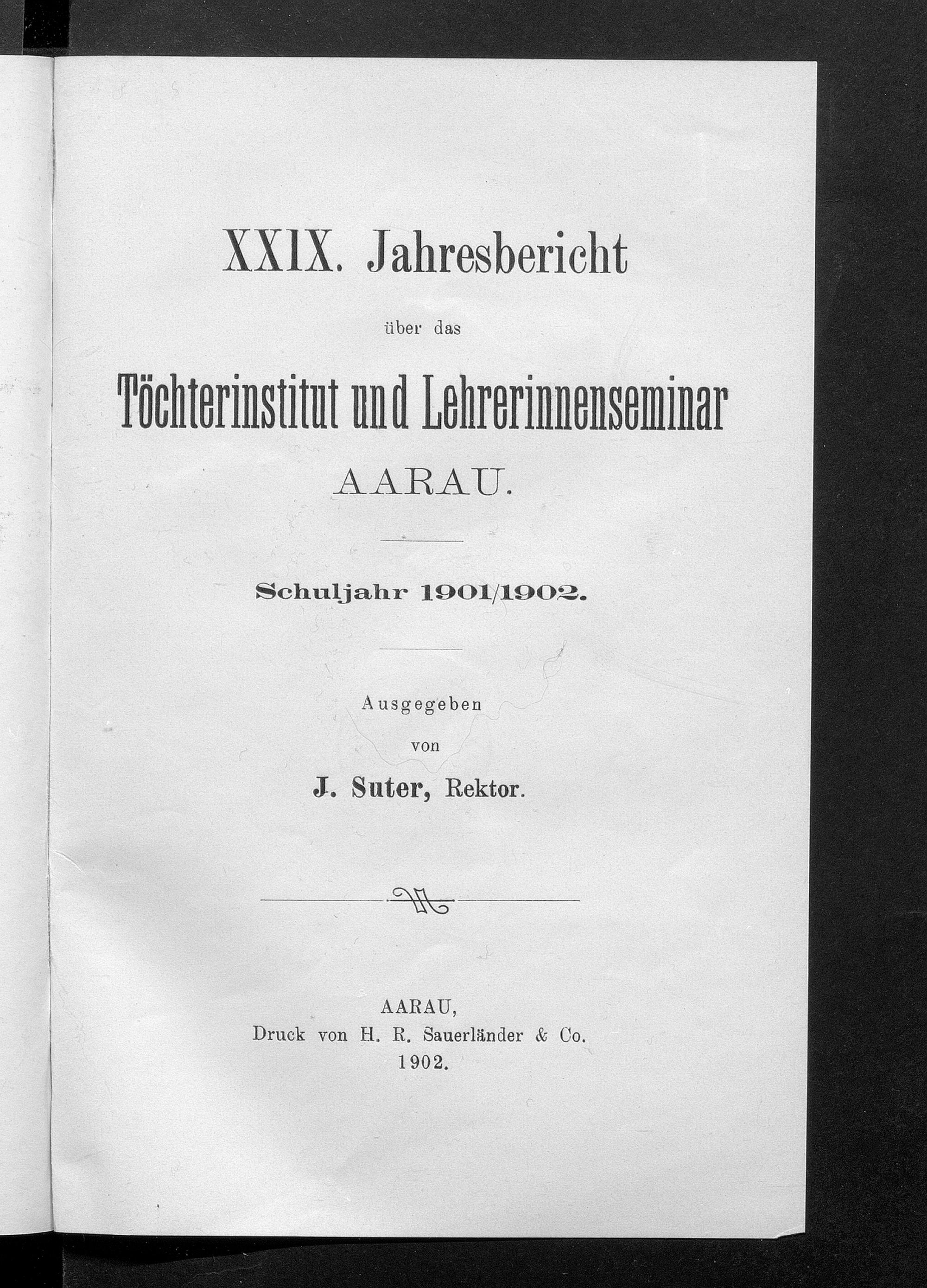 Jahresbericht über das Töchterinstitut und Lehrerinnenseminar in Aarau