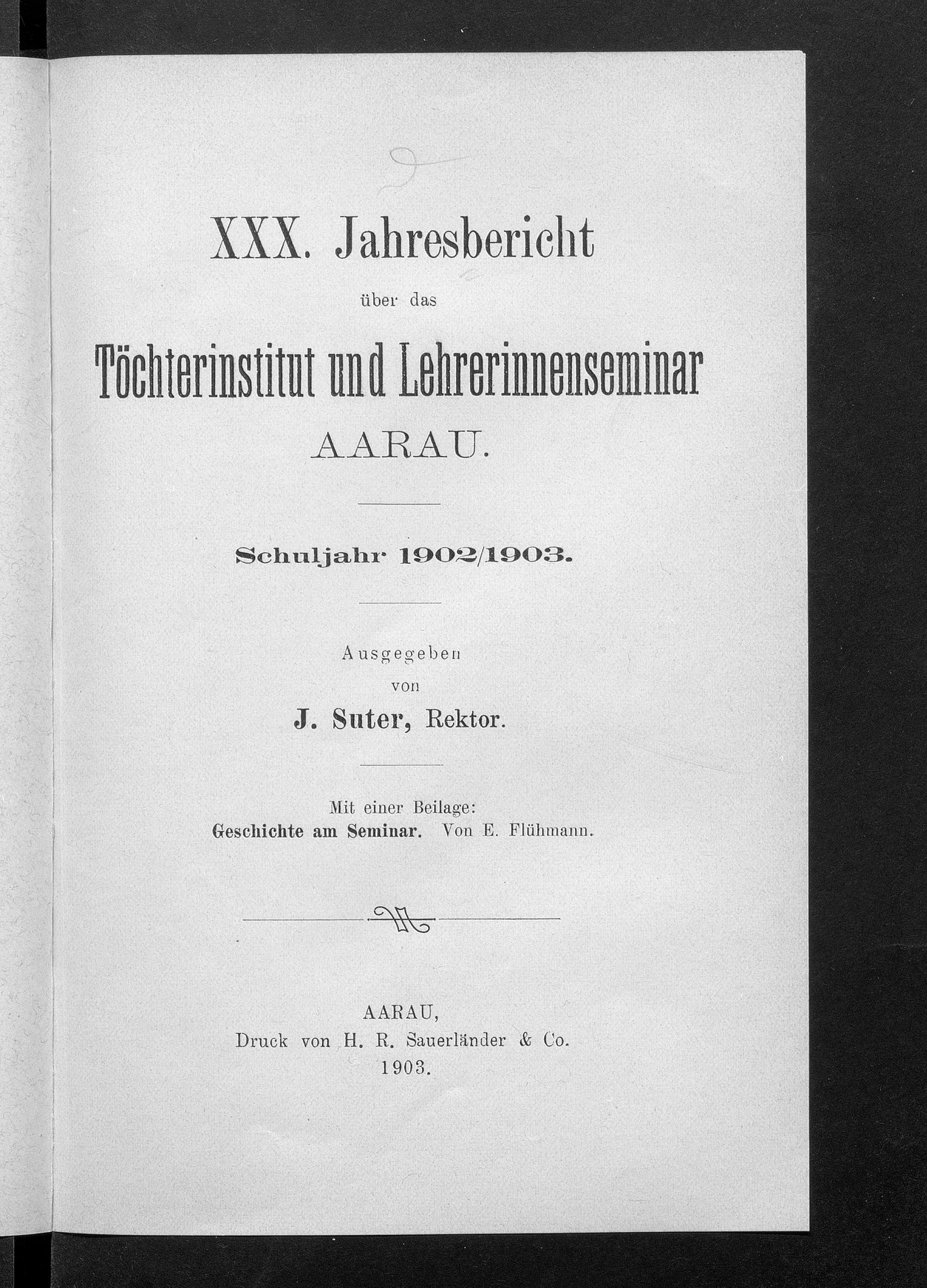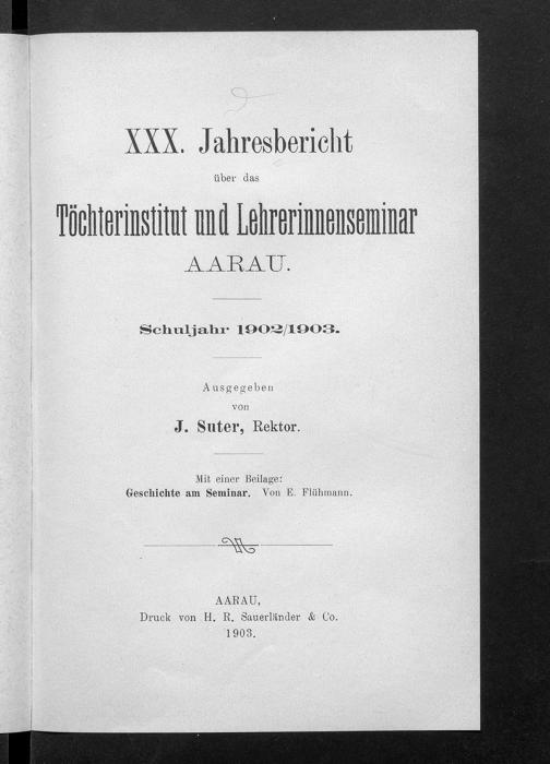 Jahresbericht über das Töchterinstitut und Lehrerinnenseminar in Aarau