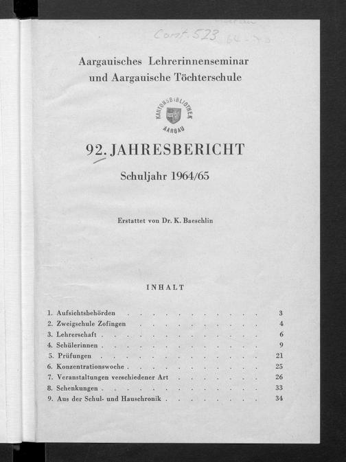 Jahresbericht über das Töchterinstitut und Lehrerinnenseminar in Aarau