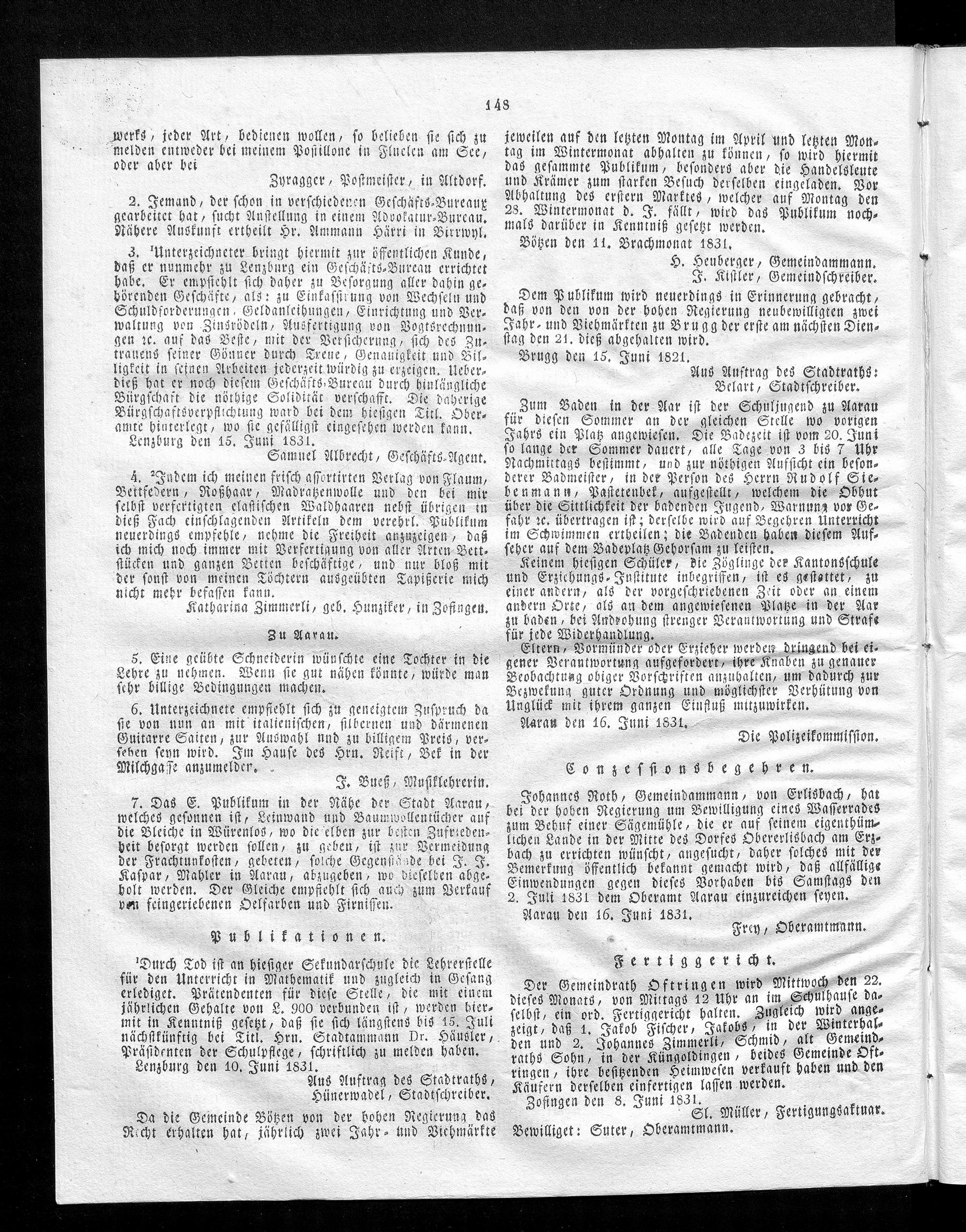 Hochobrigkeitlich privilegirtes Aargauisches Intelligenz-Blatt