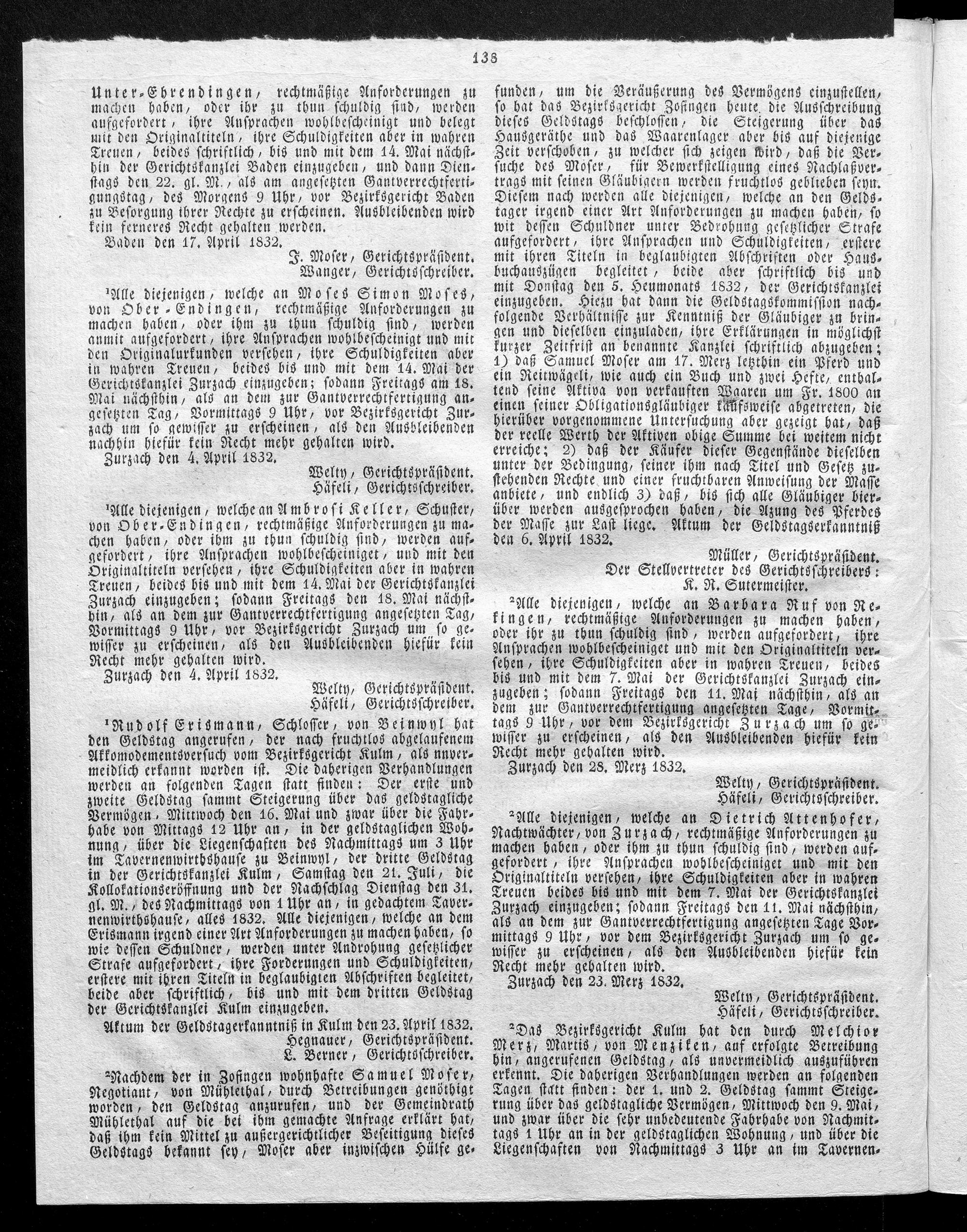 Hochobrigkeitlich privilegirtes Aargauisches Intelligenz-Blatt