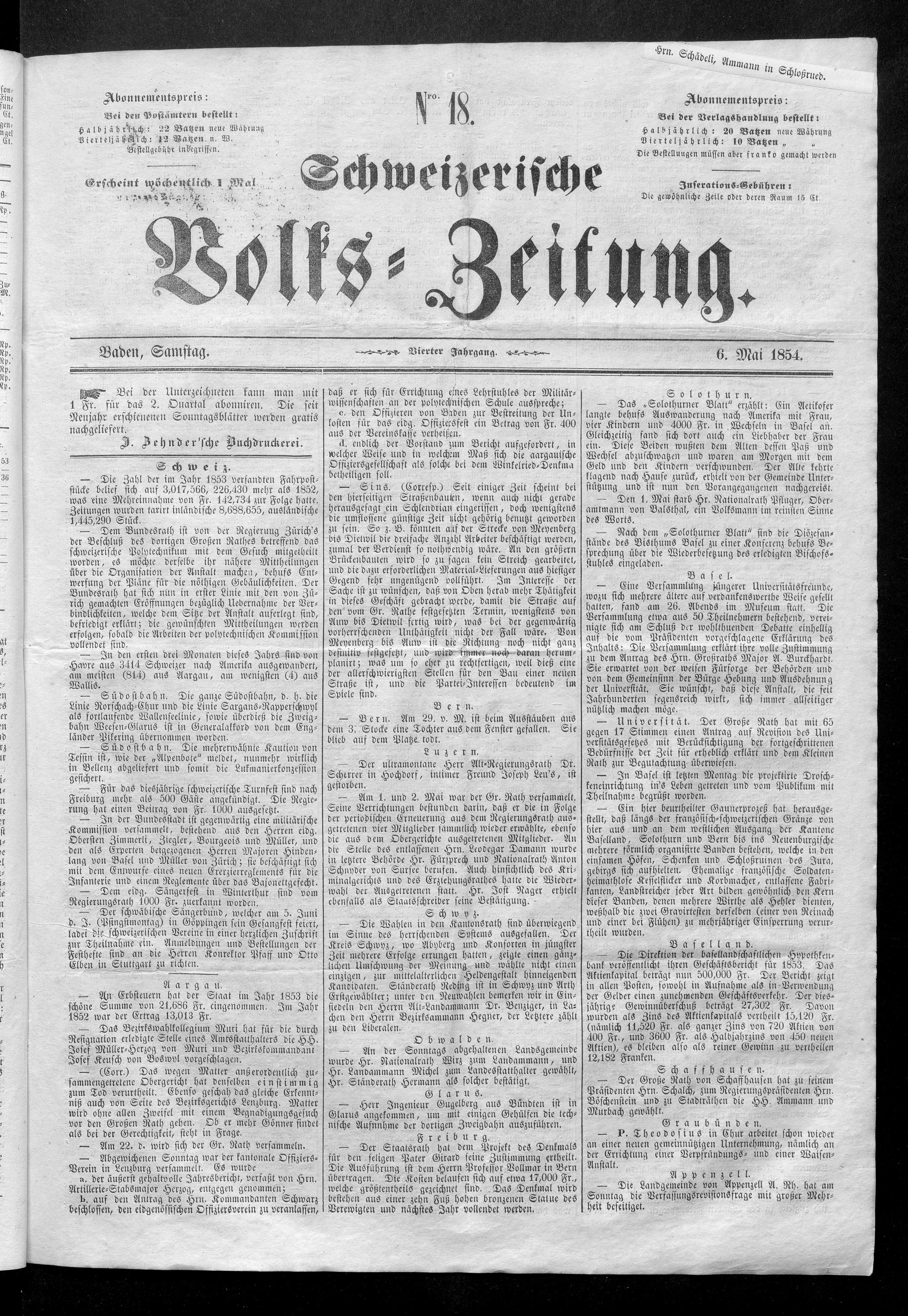 Schweizerische Volks-Zeitung. 1851-1857