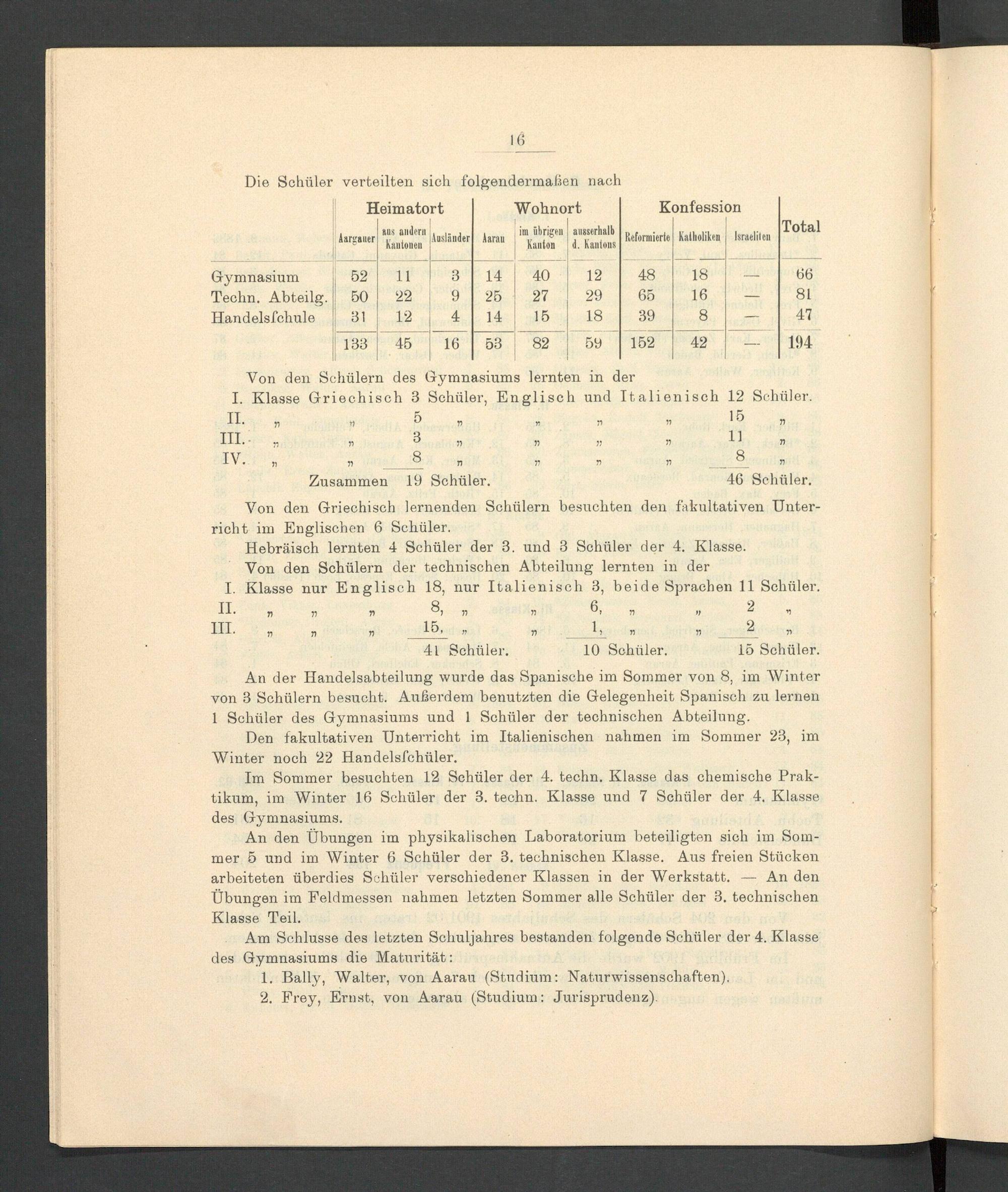 Programm der Aargauischen Kantonsschule
