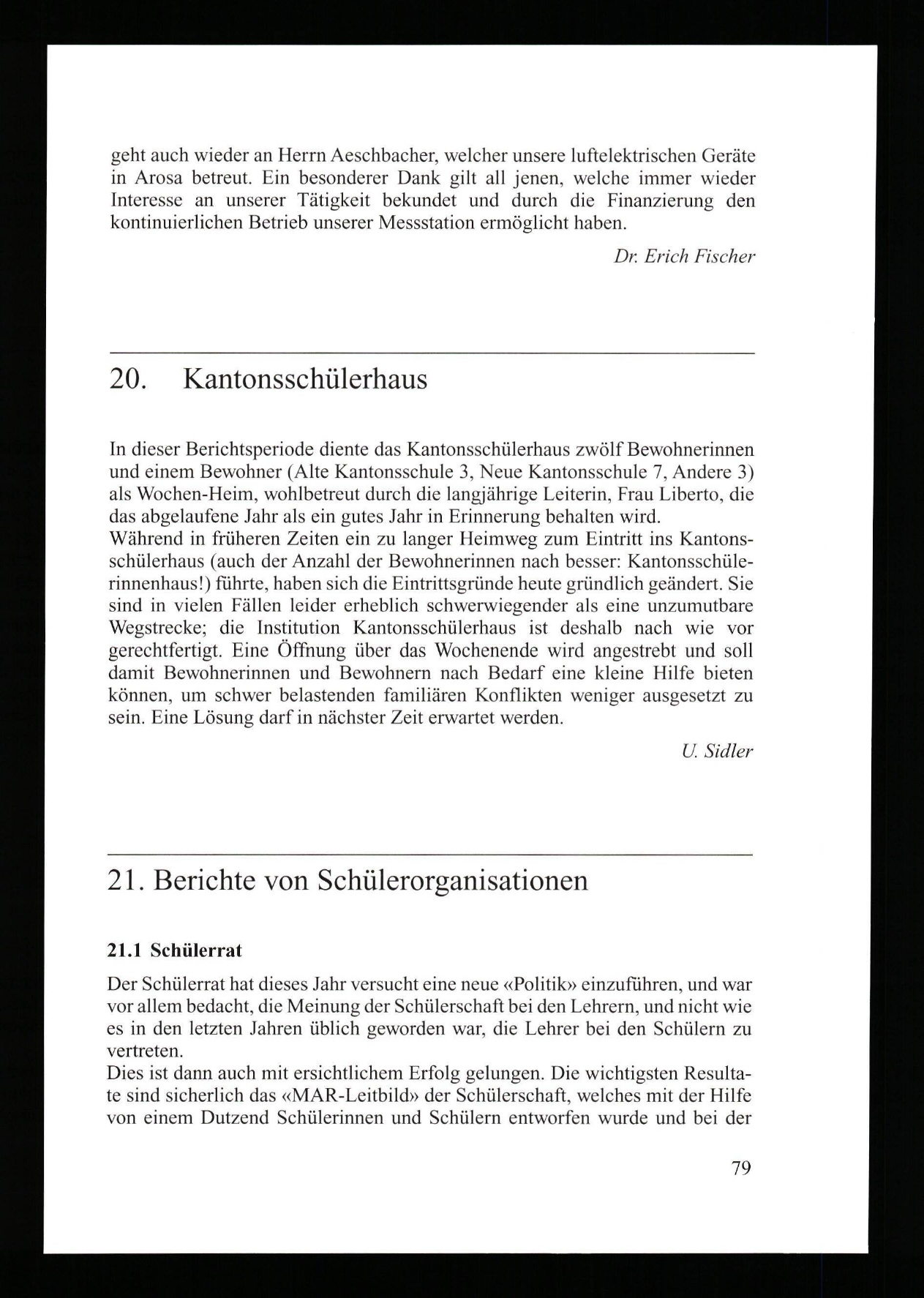 Jahresbericht der Alten Kantonsschule Aarau
