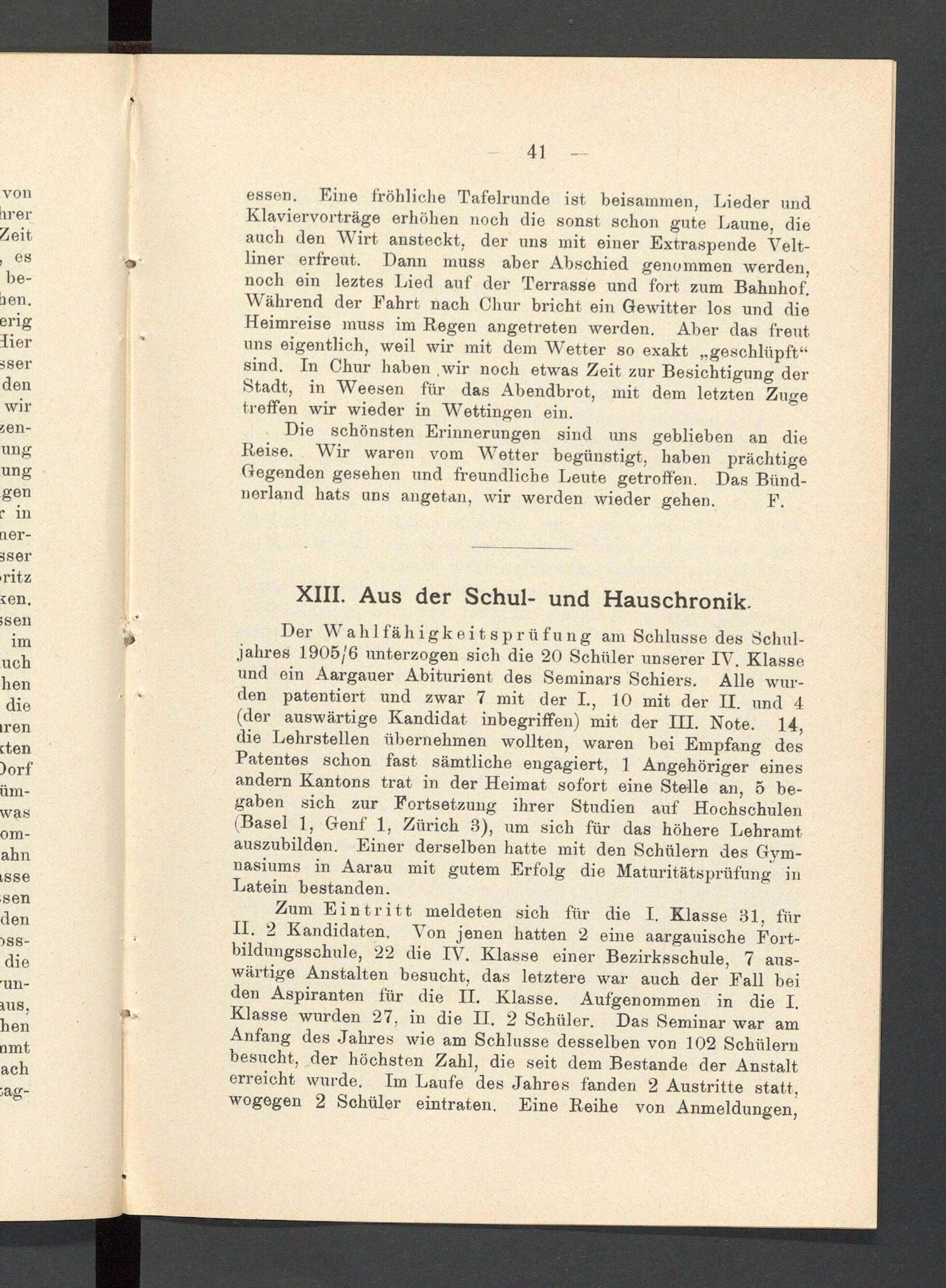 Jahresbericht über das aargauische Lehrerseminar Wettingen