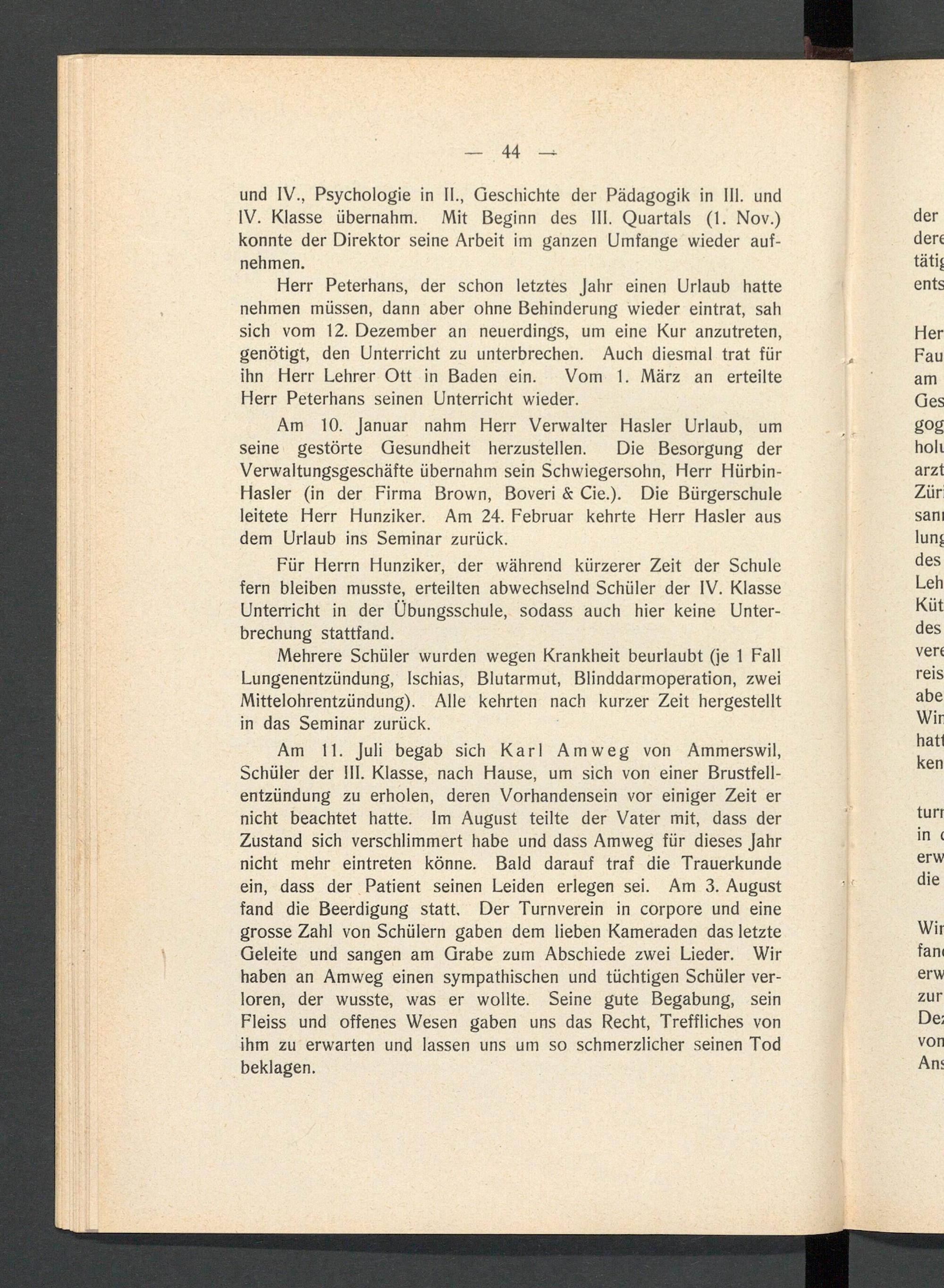 Jahresbericht über das aargauische Lehrerseminar Wettingen