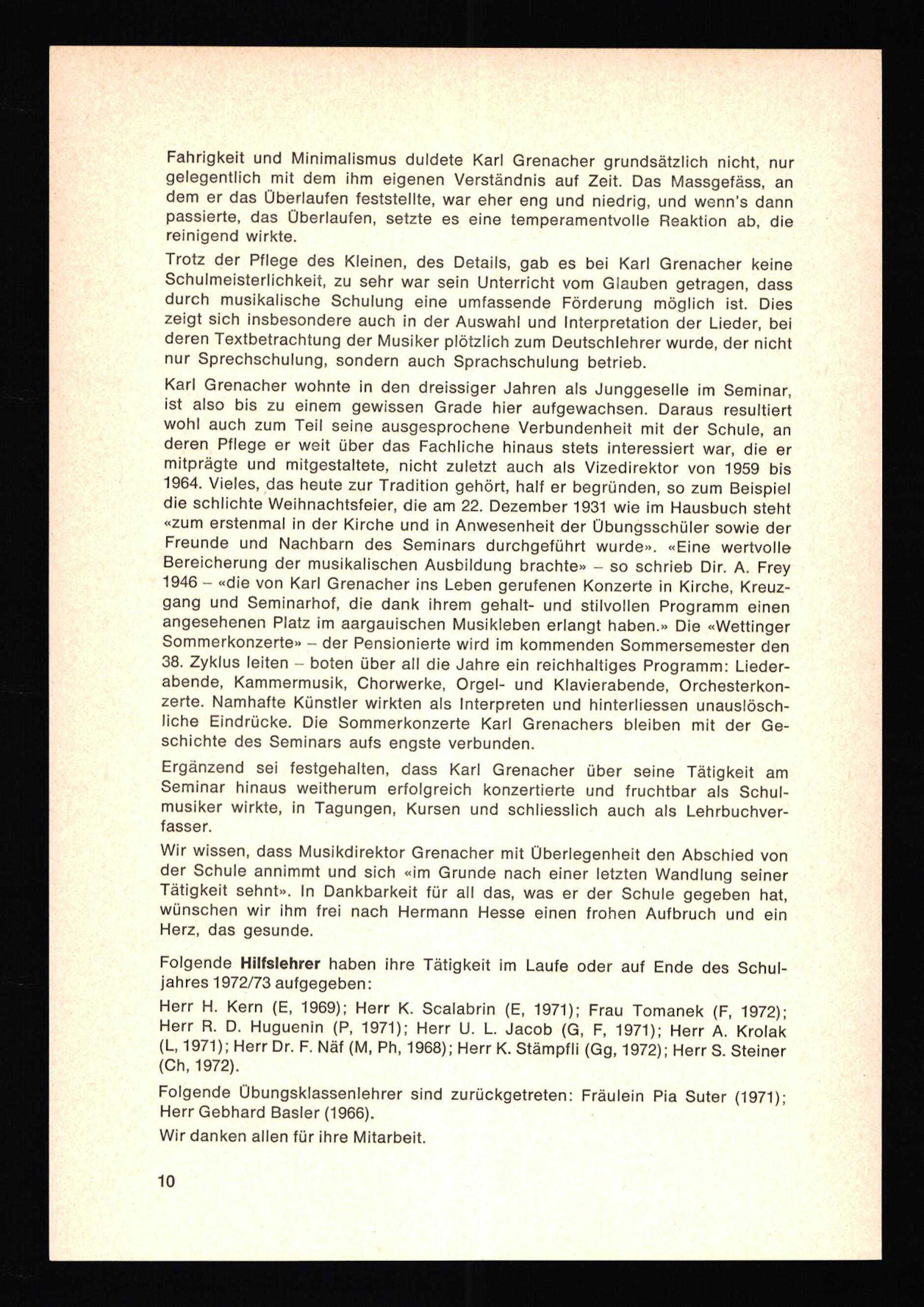 Jahresbericht über das aargauische Lehrerseminar Wettingen
