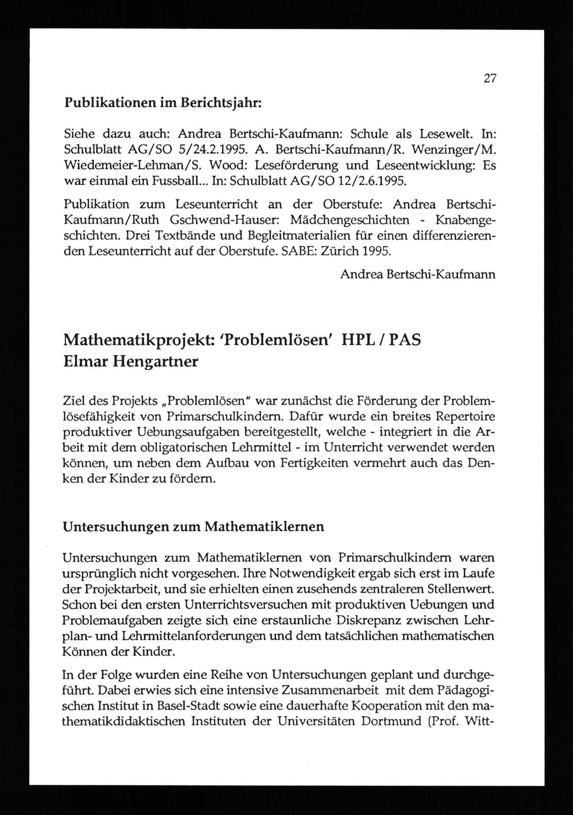 Jahresbericht über das Schuljahr ...