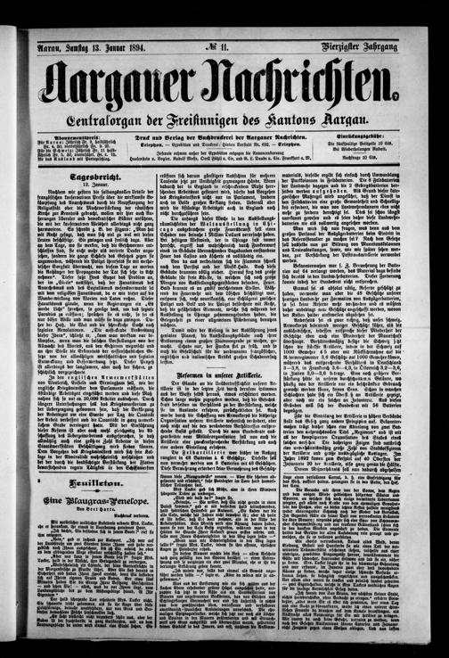 Aargauer Nachrichten : Freisinning-demokratisches Organ des Kantons Aargau