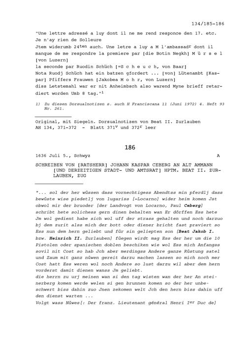 Schreiben von Johann Kaspar Ceberg, Ratsherr, an Beat II. Zurlauben, Hauptmann und Stadt- und Amtrat, Zug