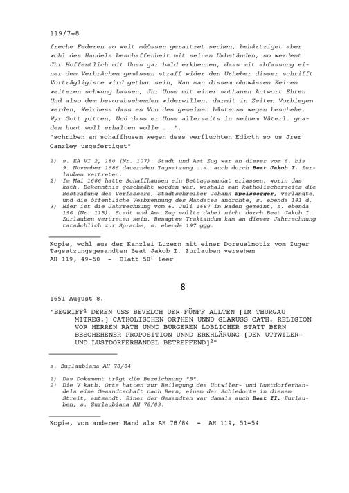 Schreiben der Gesandten der Neun Katholischen Orte und der Abtei Sankt Gallen auf...