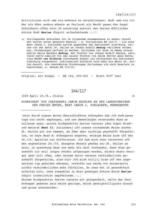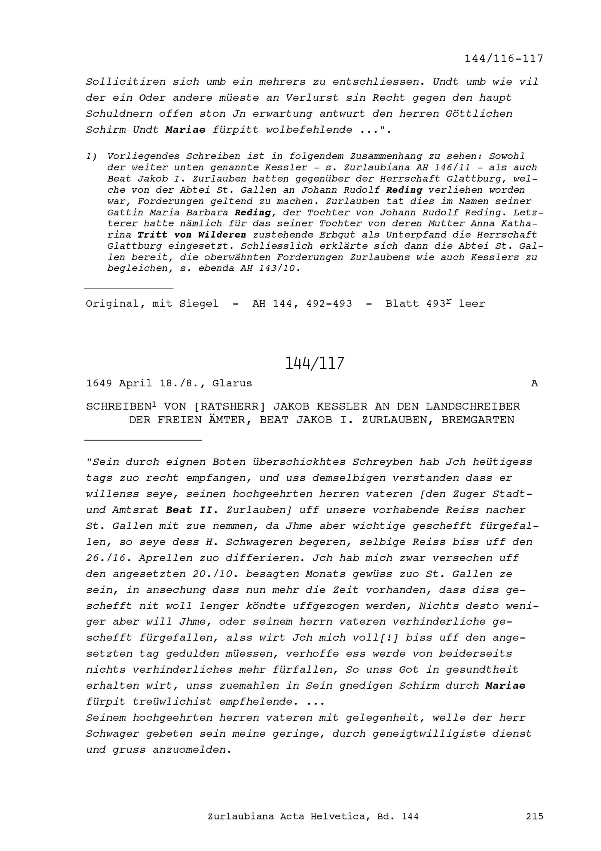 Schreiben von Jakob Kessler, Ratsherr, an Beat Jakob I. Zurlauben, Landschreiber der Freien Ämter, Bremgarten