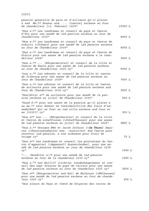Abrechnung der Einnahmen und Ausgaben durch Claude du Ryer, Rat des Königs von Frankreich und Trésorier der Schweizer und Bündner im Dienste Frankreichs 1639 und von Blaise Méliand, Ambassador von Frankreich