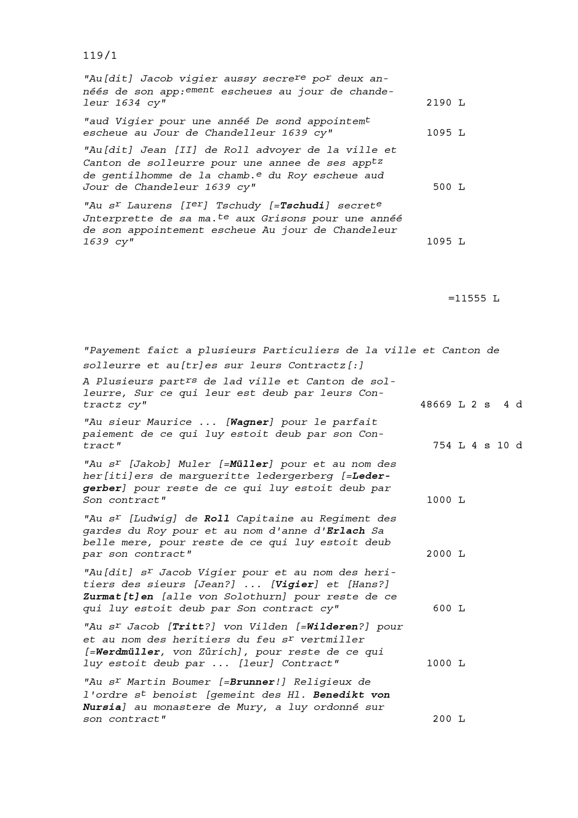 Abrechnung der Einnahmen und Ausgaben durch Claude du Ryer, Rat des Königs von Frankreich und Trésorier der Schweizer und Bündner im Dienste Frankreichs 1639 und von Blaise Méliand, Ambassador von Frankreich