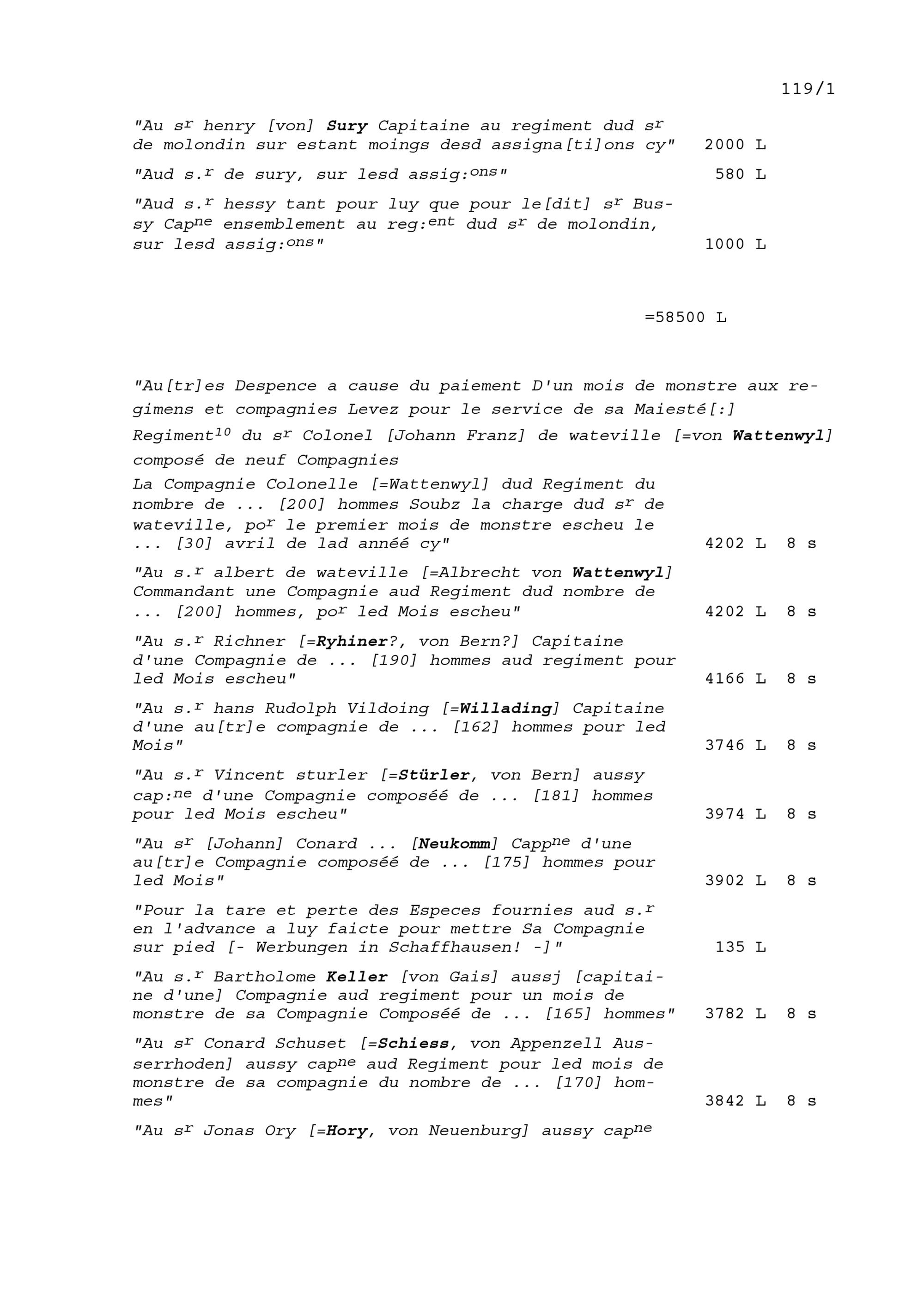 Abrechnung der Einnahmen und Ausgaben durch Claude du Ryer, Rat des Königs von Frankreich und Trésorier der Schweizer und Bündner im Dienste Frankreichs 1639 und von Blaise Méliand, Ambassador von Frankreich