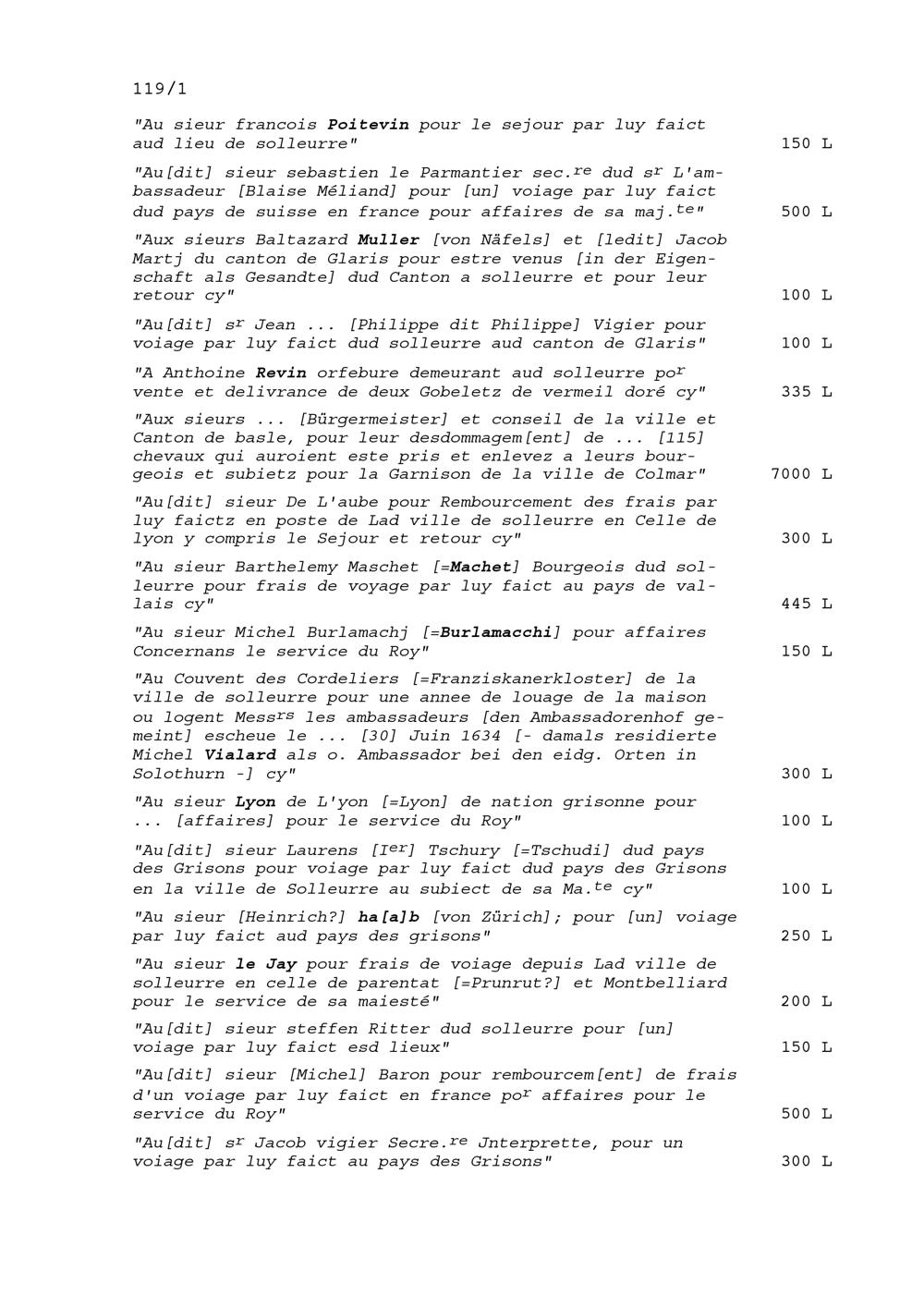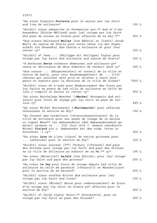 Abrechnung der Einnahmen und Ausgaben durch Claude du Ryer, Rat des Königs von Frankreich und Trésorier der Schweizer und Bündner im Dienste Frankreichs 1639 und von Blaise Méliand, Ambassador von Frankreich
