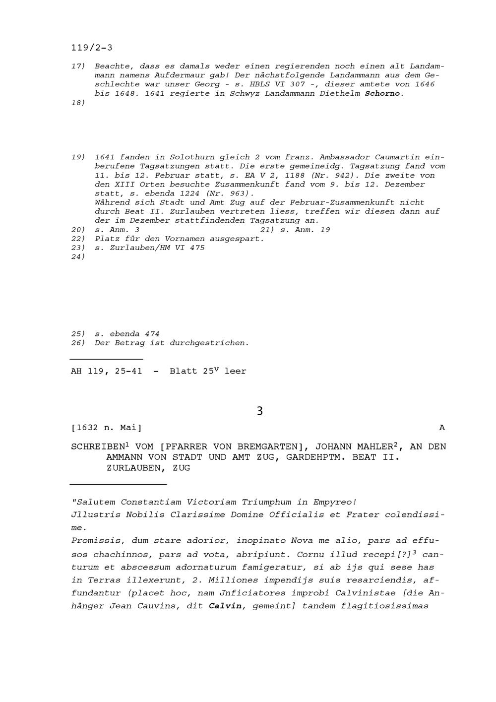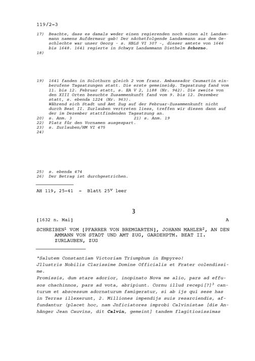 Schreiben von Johann Mahler, Pfarrer von Bremgarten, an Beat II. Zurlauben, Ammann von Stadt und Amt Zug und Gardehauptmann, Zug
